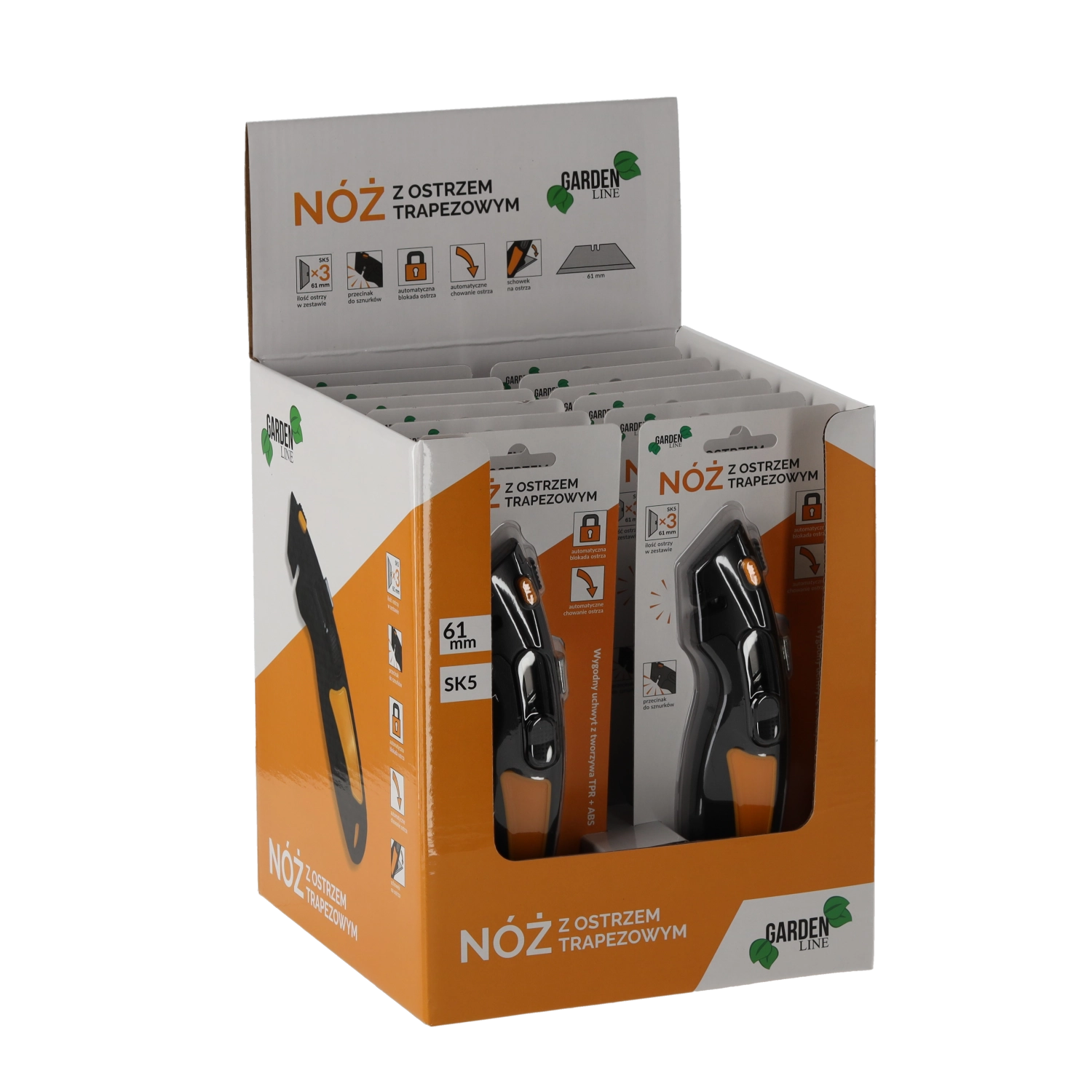 Grâce à l’acier SK5, la lame se distingue par une grande dureté et une longue durée de vie. Un compartiment pratique à l’intérieur de la poignée accueille 2 lames trapézoïdales de rechange, pour un remplacement immédiat sans perte de temps.