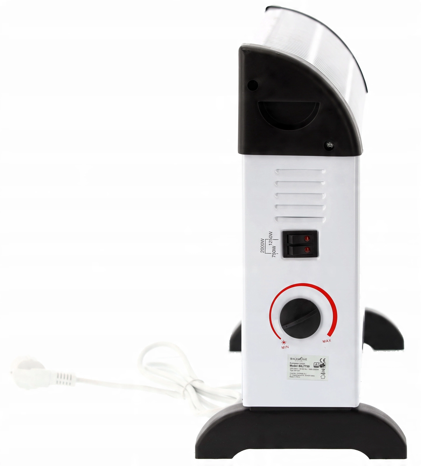 Les commandes pratiques sur le côté offrent un choix aisé entre trois niveaux de puissance et le réglage continu du thermostat. La protection contre la surchauffe intégrée renforce la sécurité au quotidien. Des pieds stables et une construction légère permettent un transport et un placement faciles selon les besoins.