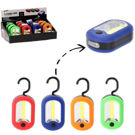 Lampe de poche LED double fonction avec crochet, assortiment de couleurs