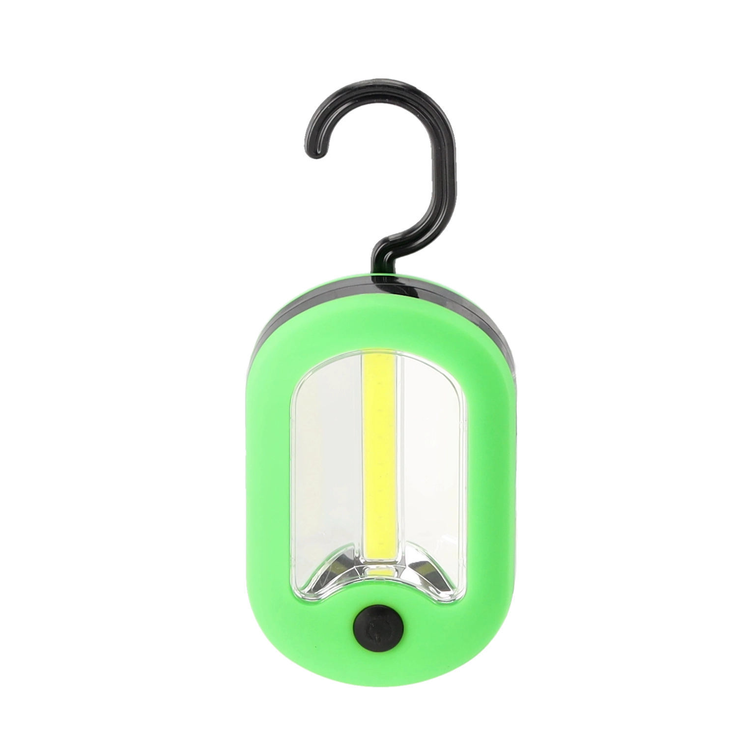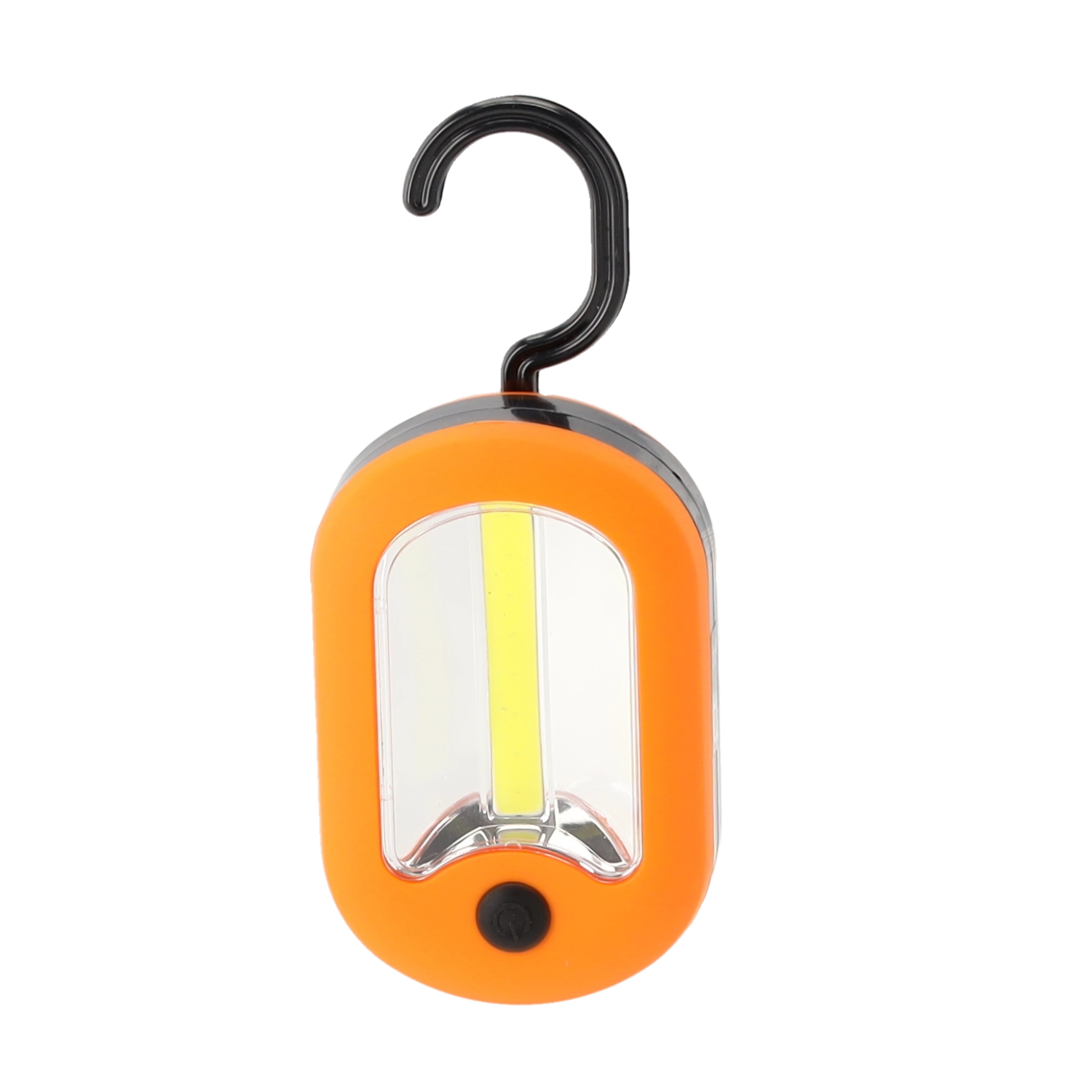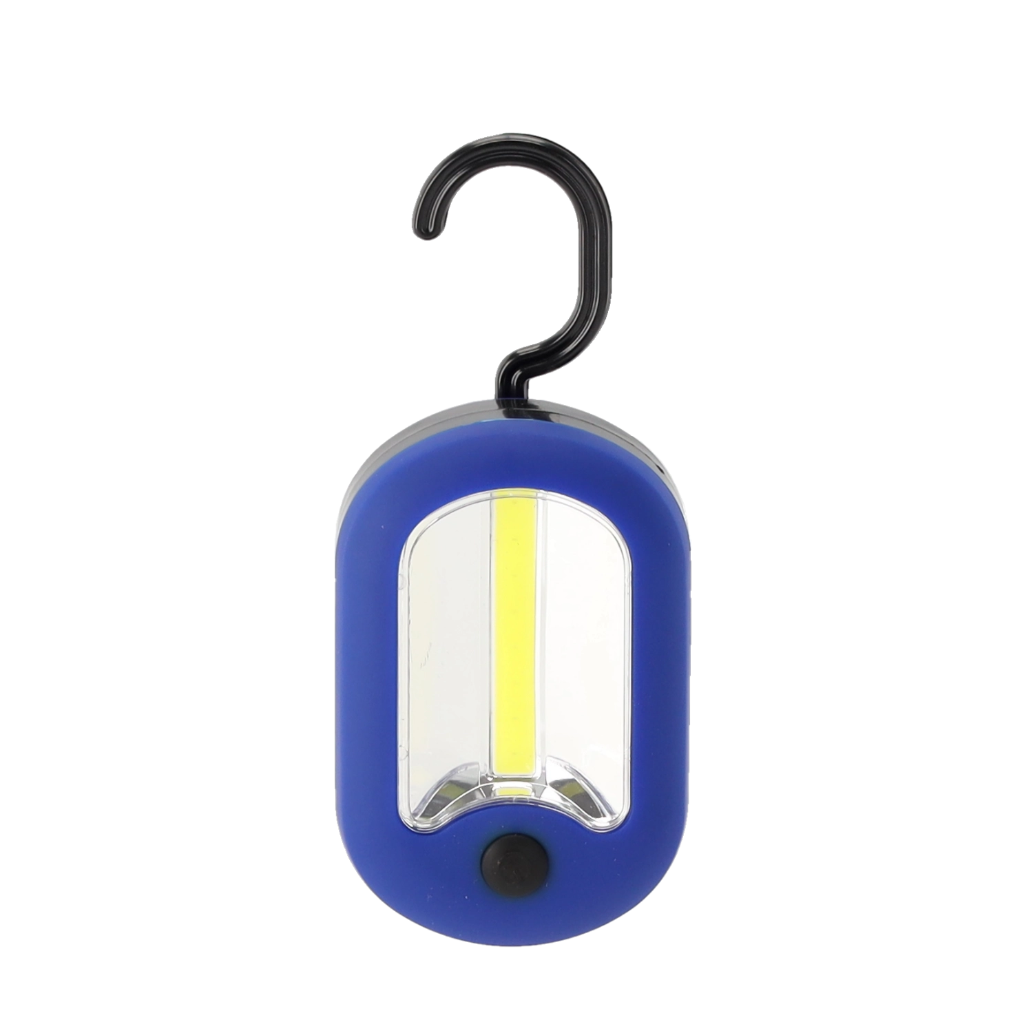 Lampe de poche LED compacte à double fonction avec crochet offrant une lumière puissante et uniforme COB + LED, une suspension pratique pour garder les mains libres et une utilisation immédiate grâce aux piles incluses. Idéale pour le chalet, le garage, la voiture et le camping.