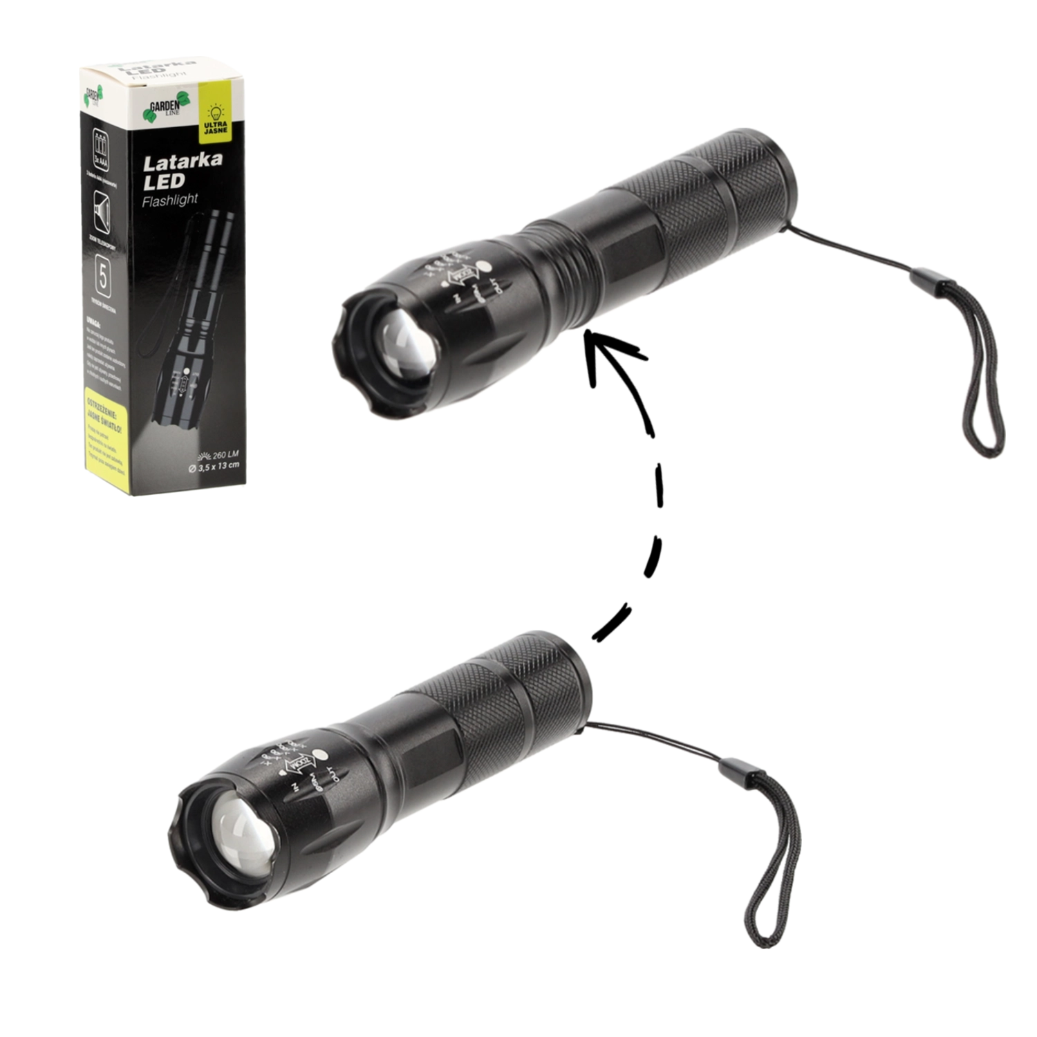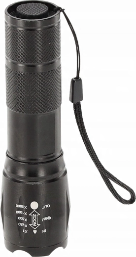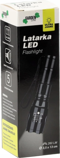 Cette lampe torche LED noire allie puissance de 260 lumens et excellente portabilité. Son corps métallique texturé avec dragonne tient fermement en main et, grâce à la fonction mise au point/zoom, vous adaptez facilement le faisceau lumineux à l’usage du moment – du large faisceau diffus au rayon concentré.