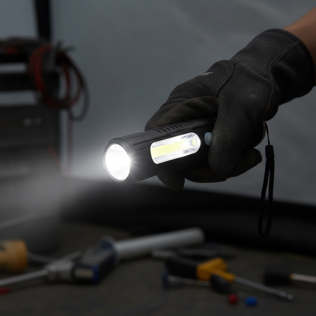 Vous cherchez une lampe simple et fonctionnelle qui ne vous décevra pas quand vous en avez besoin ? Cette lampe torche LED compacte allie éclairage performant, faible poids et construction résistante en plastique. Idéale pour l’atelier, le garage, la voiture, le chalet ou les promenades du soir.