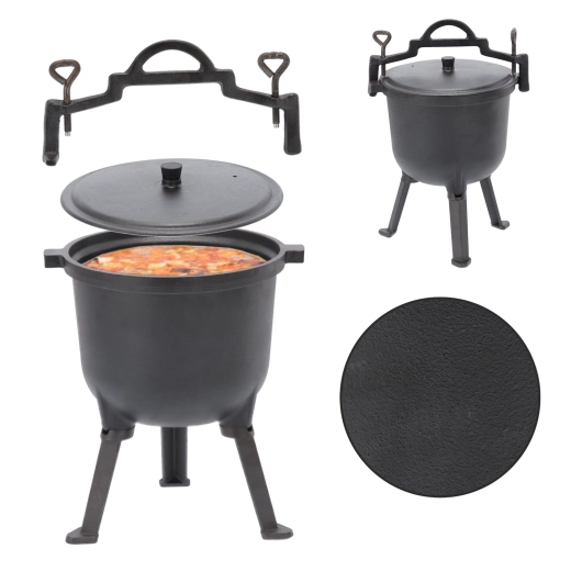 Découvrez la joie de cuisiner en plein air avec une marmite en fonte résistante, capable de tout, de la cuisson lente au bouillon vigoureux sur les flammes. Grâce à la fonte de qualité, la chaleur se diffuse uniformément, les plats n’attachent pas et restent juteux et riches en saveurs. Le volume de 8 litres suffit amplement pour la famille et un groupe d’amis.