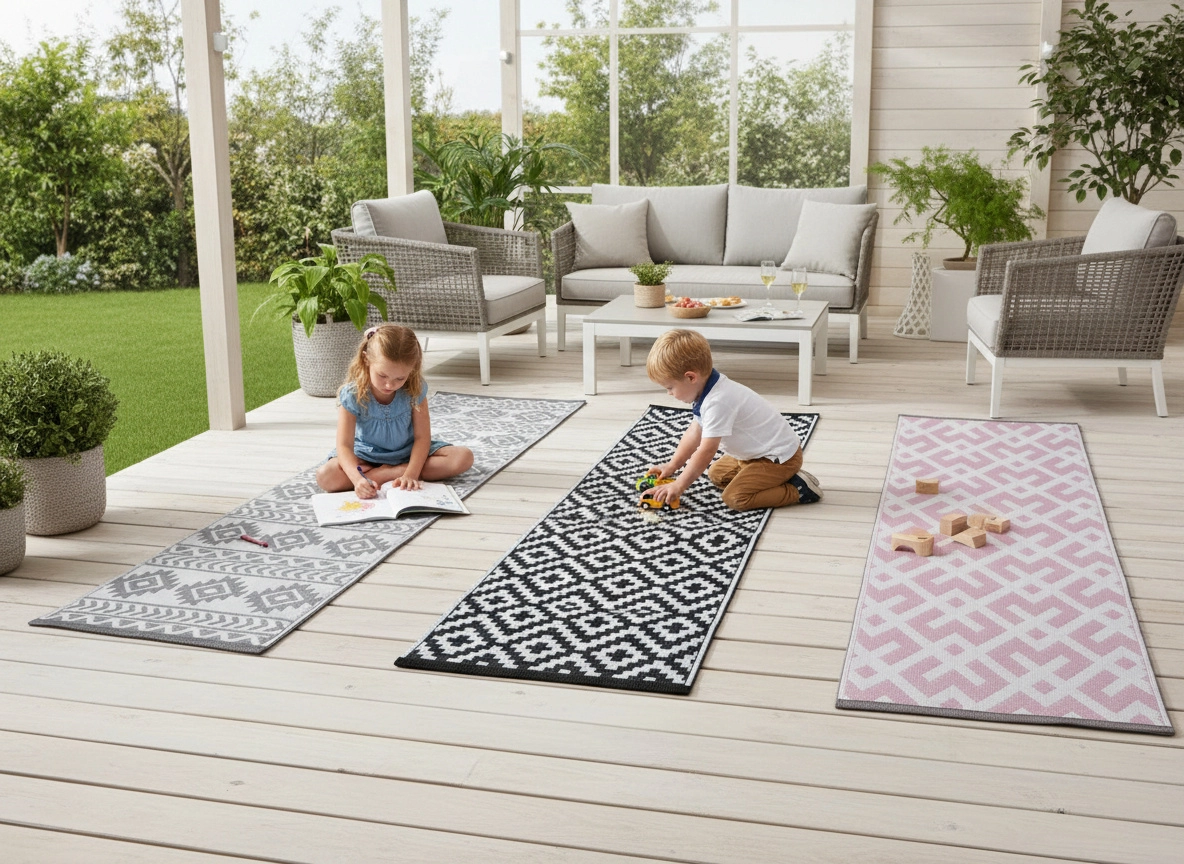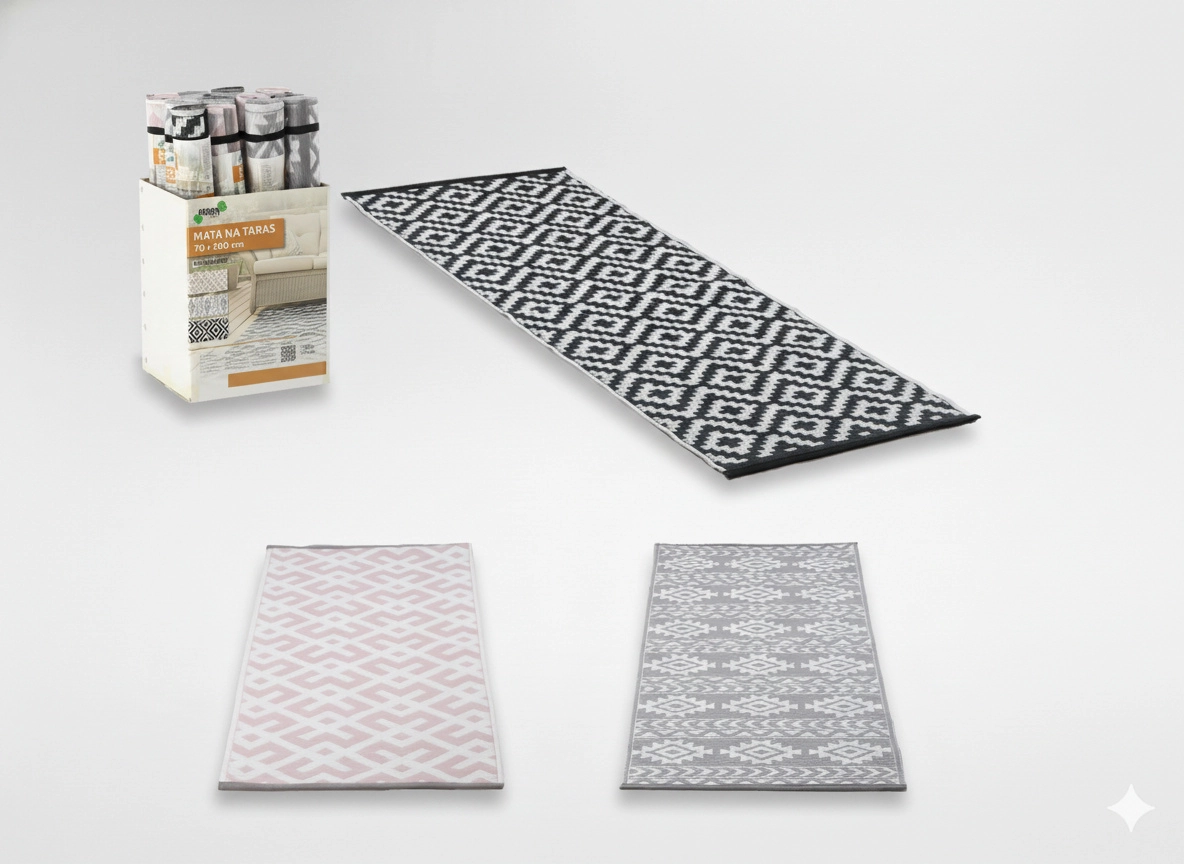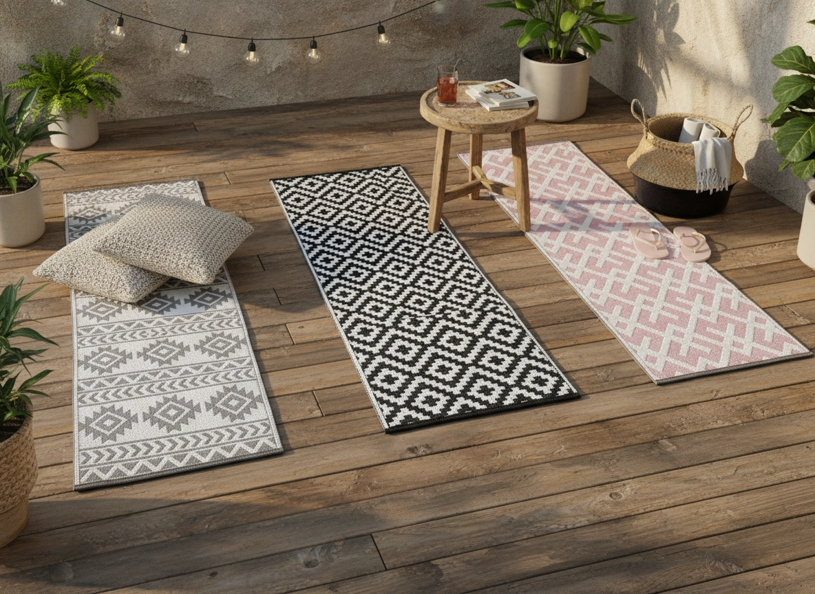 Ce tapis/coulissant pratique et décoratif pour terrasse crée une zone agréable pour la détente et les rencontres. Entretien facile et résistance à l’humidité et aux UV en font un choix idéal pour l’extérieur comme pour les entrées très fréquentées. La dimension universelle 70 × 180 cm convient parfaitement devant une porte, près du coin salon de jardin ou dans les passages étroits.