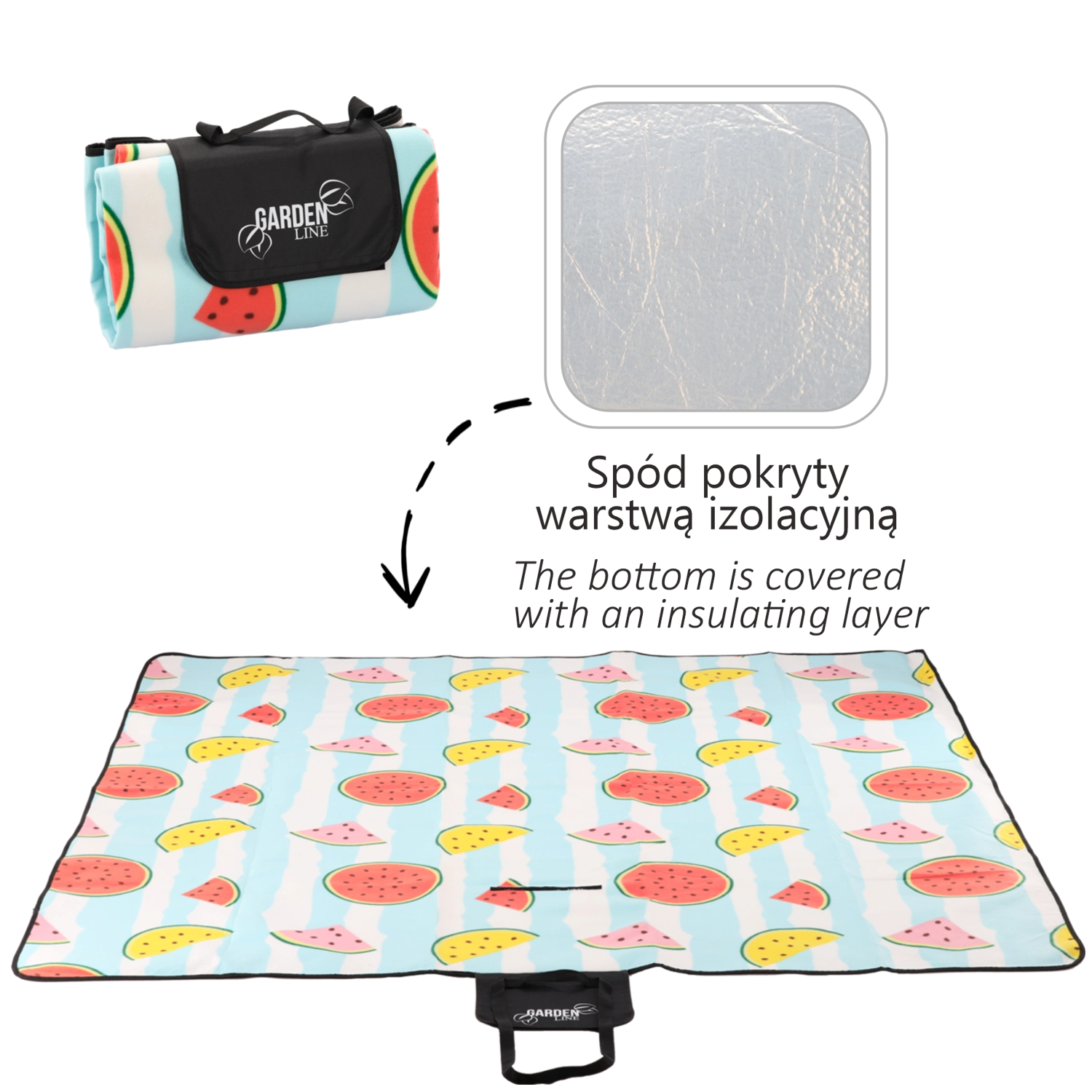 Couverture de pique-nique 200 × 200 cm avec isolation et motif fruité
