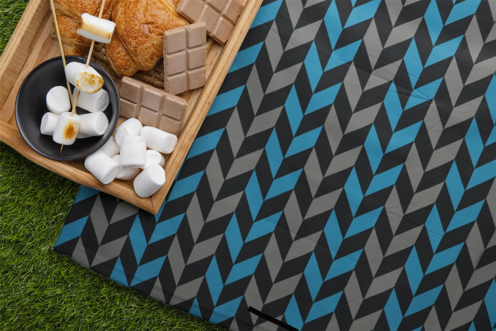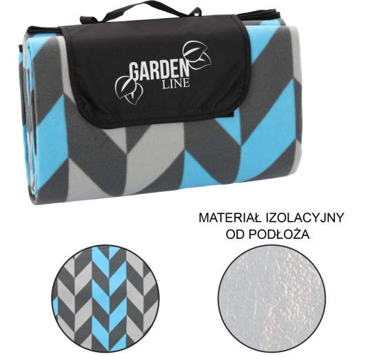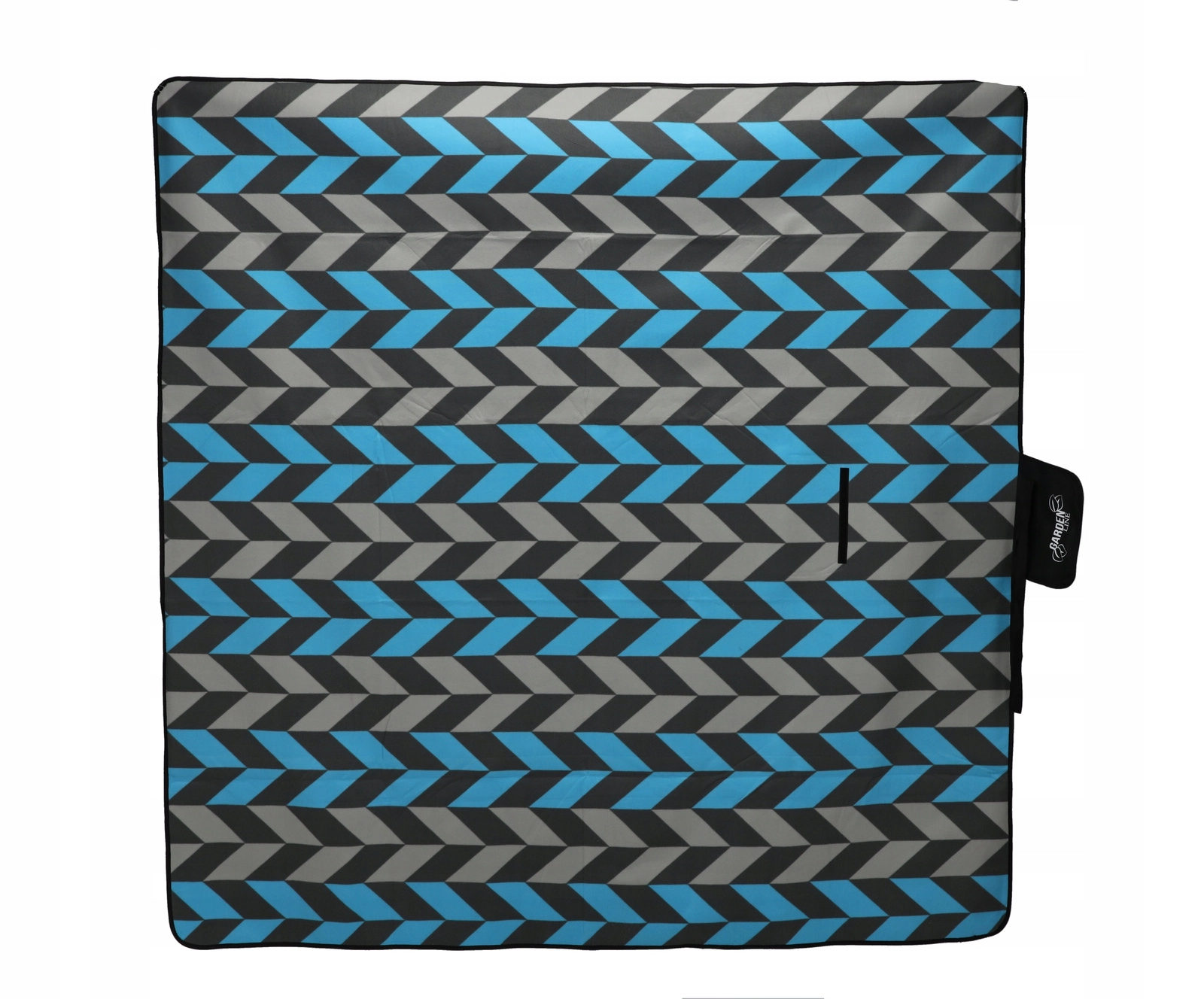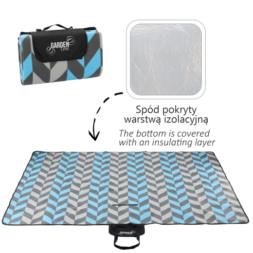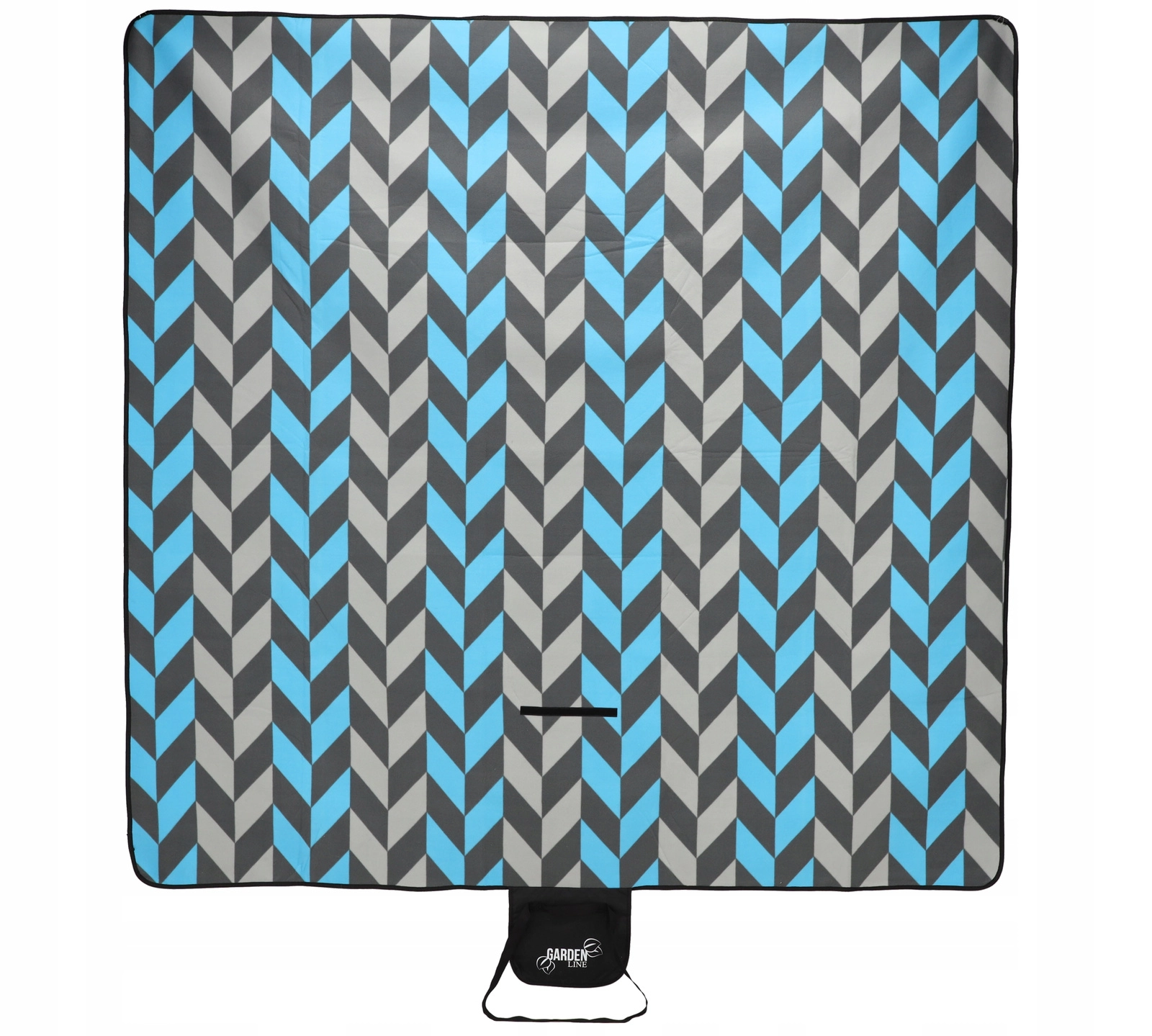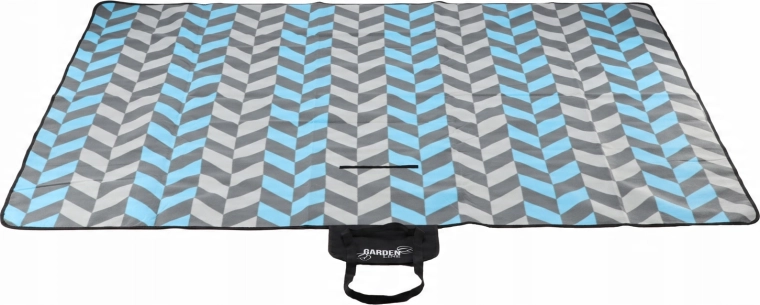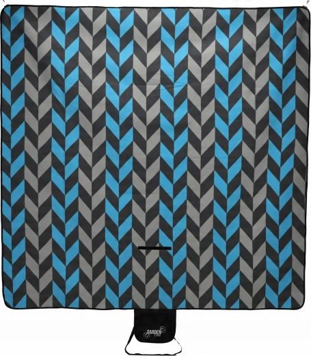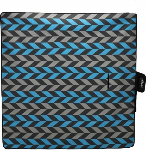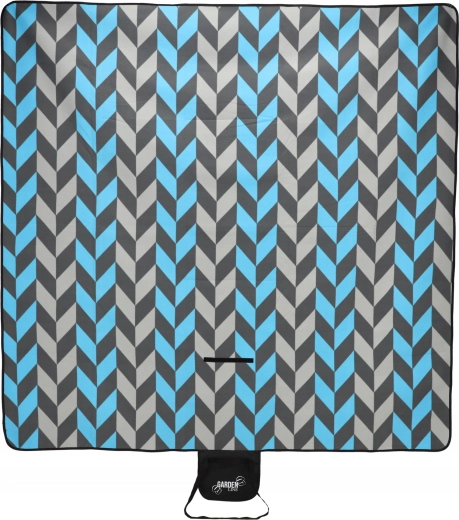 La couverture se plie facilement en un paquet compact avec un rabat à fermeture, une poignée et une sangle pour le transport. Le motif chevron moderne dans des tons de bleu et de gris convient à toutes les occasions et apporte du style à votre pique-nique.