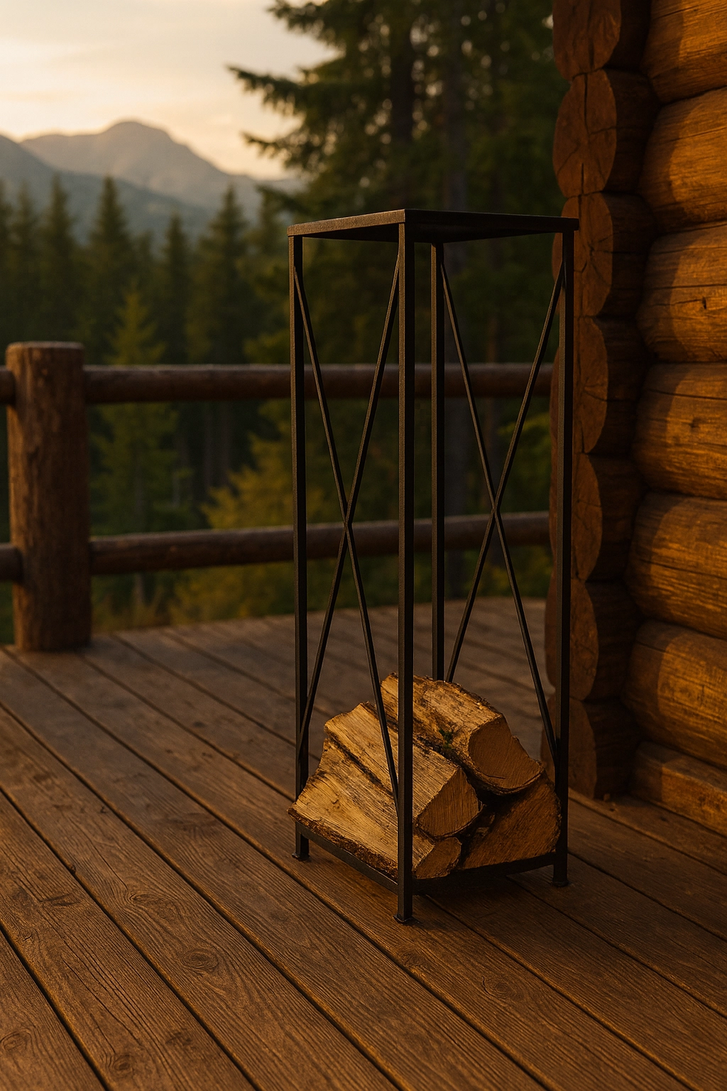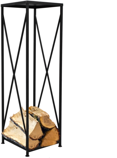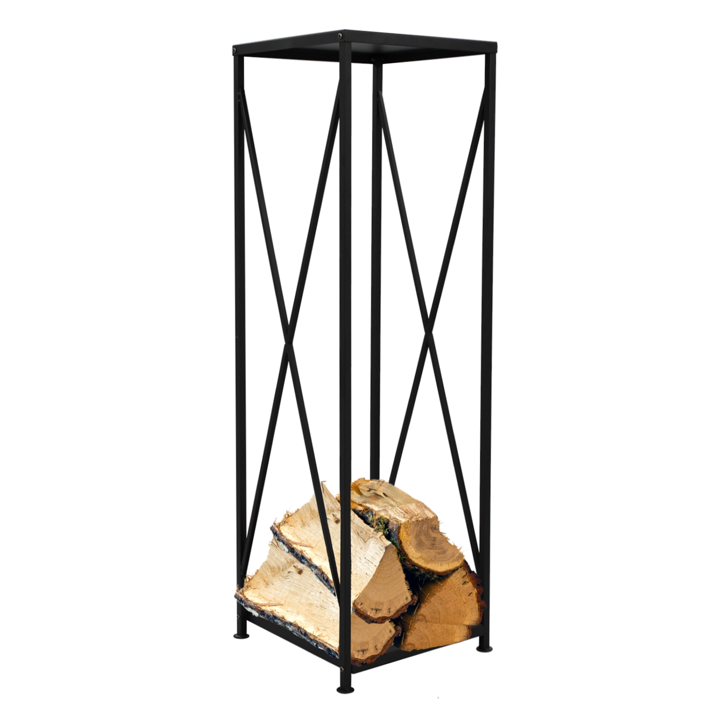 Le cadre vertical aux côtés ouverts accueille beaucoup de bois sans encombrer l’espace. Idéal près de la cheminée ou pour les petites terrasses.