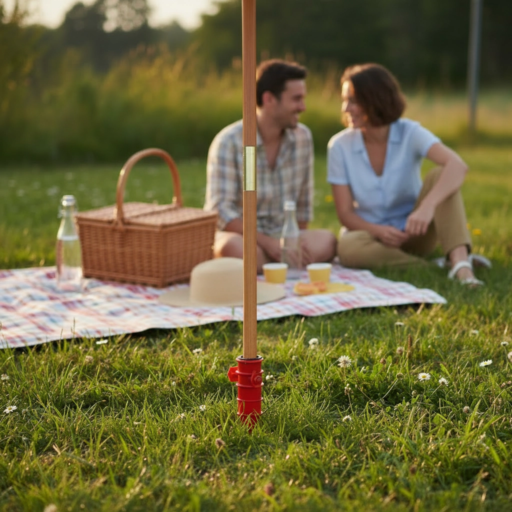 Fini le parasol qui vacille dans le sable ou le sol. Vissez simplement ce pied à vis dans le support et insérez le mât du parasol – c’est réglé en un rien de temps. La compatibilité 19–32 mm couvre la plupart des modèles courants, idéale pour la plage, le jardin et le camping.