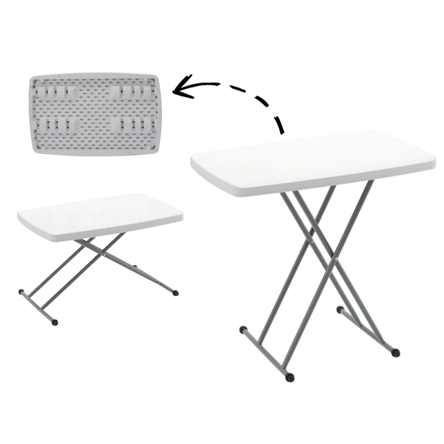 Grâce à son pliage rapide, elle est parfaite pour le camping, les voyages en caravane, les moments au jardin et l’usage domestique comme table d’appoint ou espace de travail. Le plateau blanc résistant se nettoie facilement et s’intègre parfaitement en intérieur comme en extérieur.