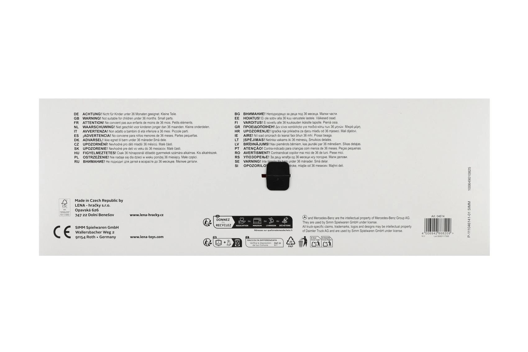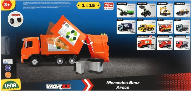 Le camion-benne à ordures MERCEDES AROCS de LENA est un véhicule finement détaillé pour les petits passionnés de technique. Grâce à sa conception robuste en plastique de qualité et à ses axes de roues métalliques solides, il résiste au jeu quotidien à l’intérieur et à l’extérieur. La partie arrière fonctionnelle avec verrou permet un chargement et un basculement des déchets en toute sécurité.