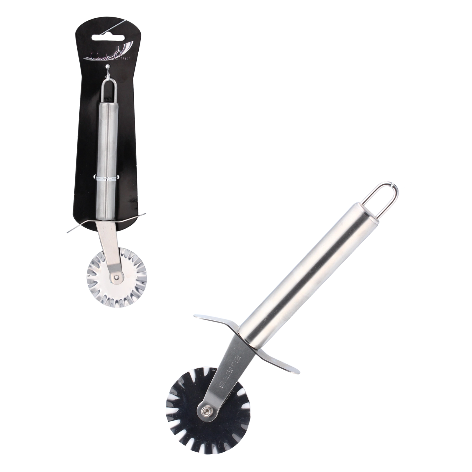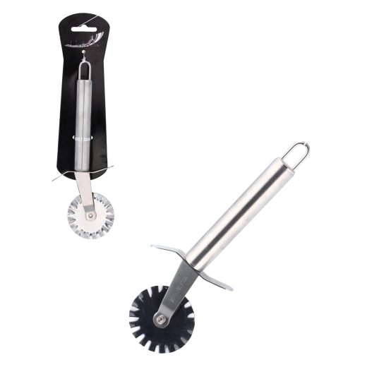 Pratique roue à pâte en acier inoxydable pour une découpe facile et précise de la pâte, de la pizza et des pâtes. La roue crantée crée des bords décoratifs à l’aspect professionnel. Sa poignée ergonomique assure une prise en main confortable et, grâce à l’anneau de suspension, elle se range facilement.
