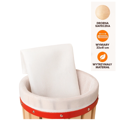 Pratique, le sac filtrant pour presses à fruits de 12 l garantit un jus plus clair avec moins de pulpe. Son matériau résistant retient la majeure partie de la pulpe et permet, lors d’un pressage plus puissant, un rendement en jus plus élevé sans en altérer le goût.