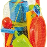 Le set comprend tout ce dont les enfants ont besoin pour préparer un festin de sable : de la casserole avec couvercle passoire à la poêle, au pichet et au sucrier, jusqu’aux louches et aux moules en forme de légumes et de cornets de glace. Le plastique résistant et l’emballage en filet facilitent le transport et le rangement.