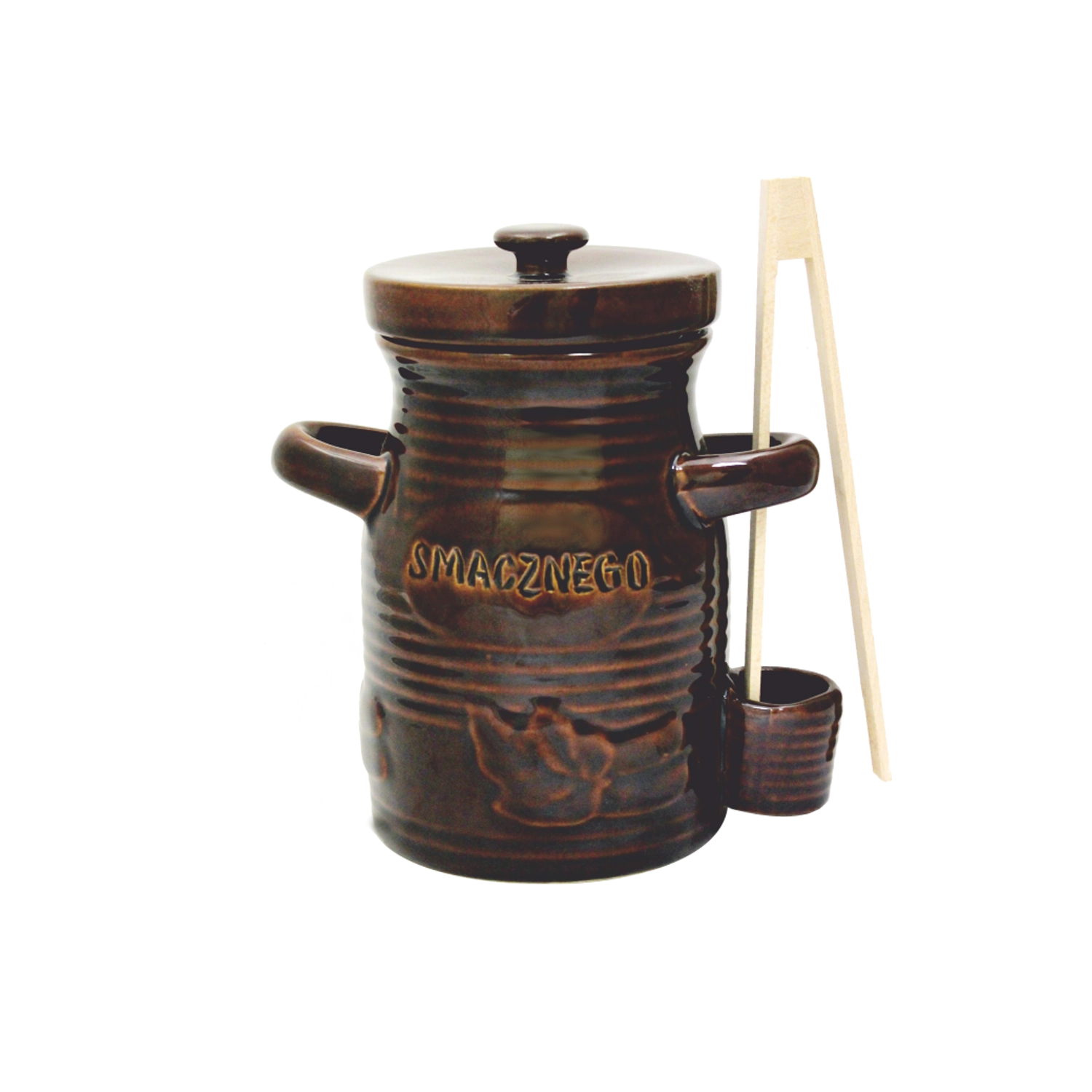 Pratique récipient en céramique de 3,5 l pour la fermentation et le stockage à la maison. Grâce à la céramique de qualité et à sa surface non toxique et résistante aux acides, il crée des conditions optimales pour la fermentation et préserve la saveur naturelle ainsi que la qualité des aliments. Il comprend une poche pratique pour pince et une pince en bois de 22 cm pour un retrait hygiénique.