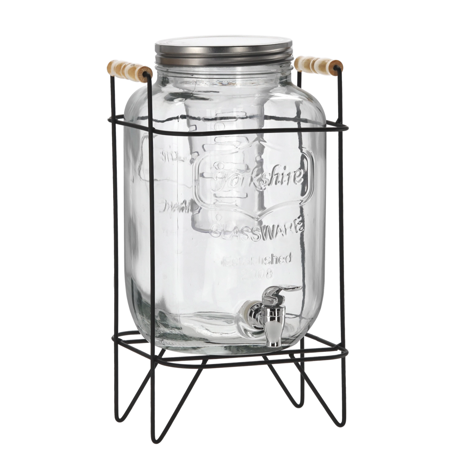 Profitez d’un rafraîchissement sans souci pour un plus grand nombre d’invités. Le verre transparent met joliment en valeur les couleurs des limonades, thés glacés maison ou eaux détox, tandis que le couvercle en métal protège le contenu de la poussière et des insectes – idéal pour les événements en plein air. La cartouche pour fruits ou glace ajoute goût et fraîcheur sans obstruer le robinet.