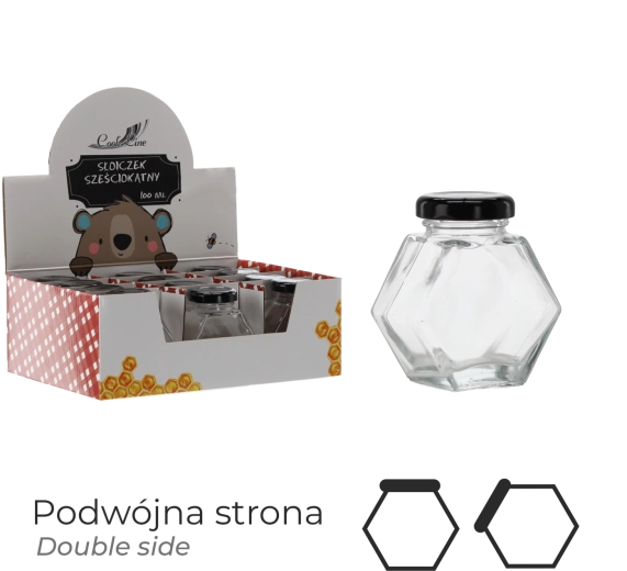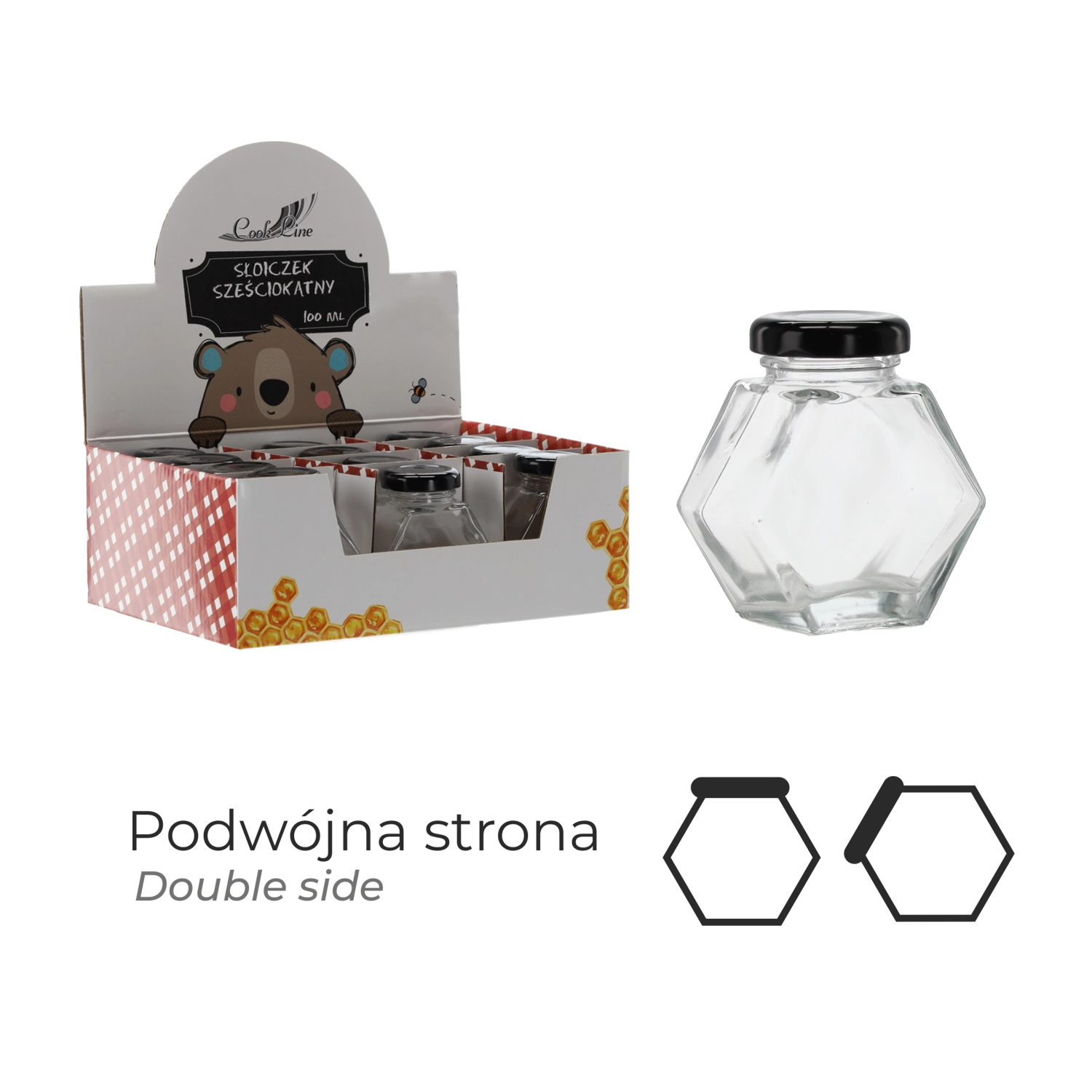 Ce bocal hexagonal élégant de 100 ml est un excellent choix pour conserver le miel, les confitures, les épices, les herbes ou de petites délicatesses. Grâce à son couvercle hermétique, le contenu reste frais plus longtemps et bien scellé. Son format compact convient à la cuisine, aux coffrets cadeaux et à la production maison.