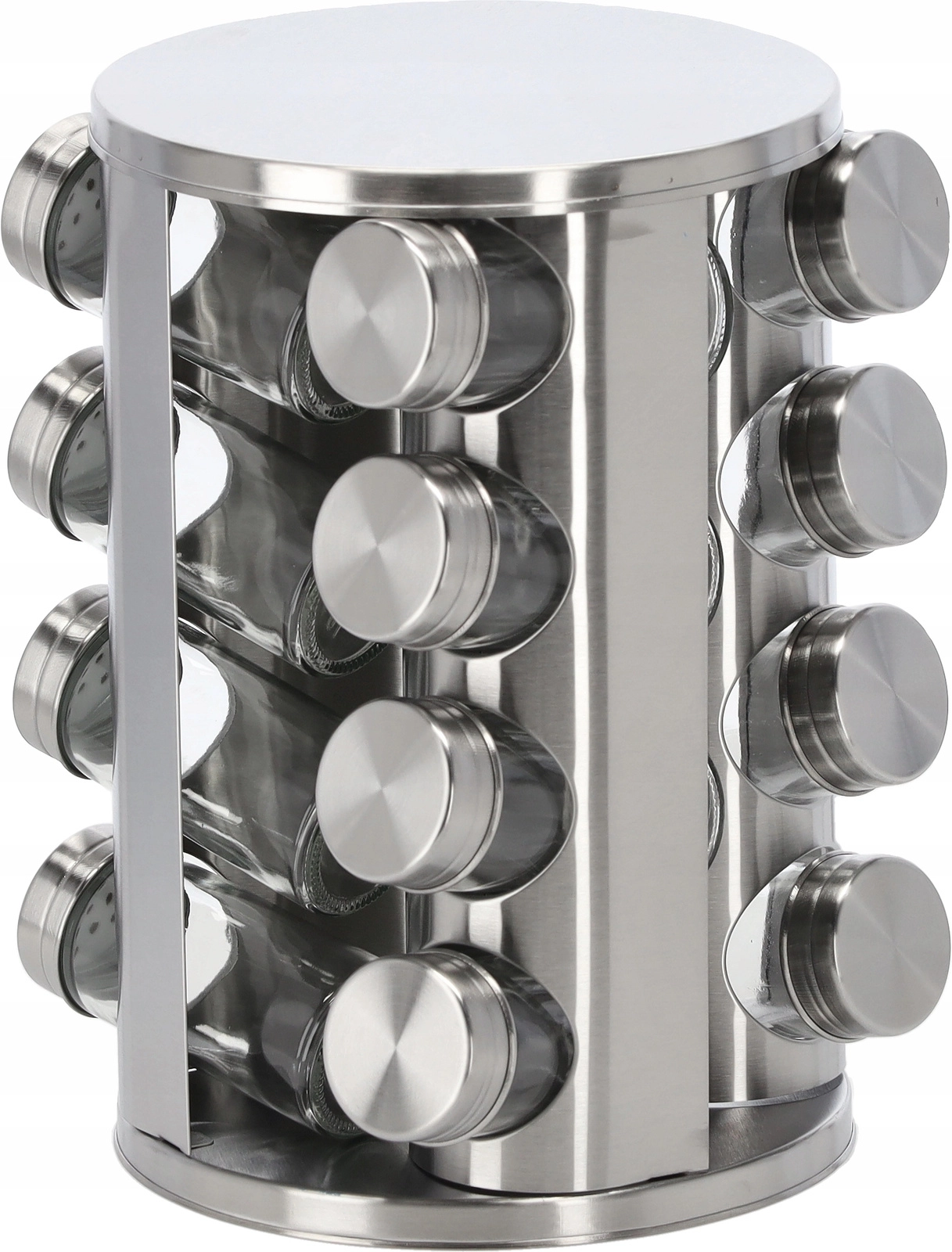 Gardez vos épices toujours à portée de main et parfaitement organisées. Le support rond pivotant en acier inoxydable avec 16 pots en verre transparent dotés de couvercles métalliques à vis allie fonctionnalité et design élégant. Grâce à la rotation fluide, vous trouvez facilement l’ingrédient nécessaire même pendant la cuisson.