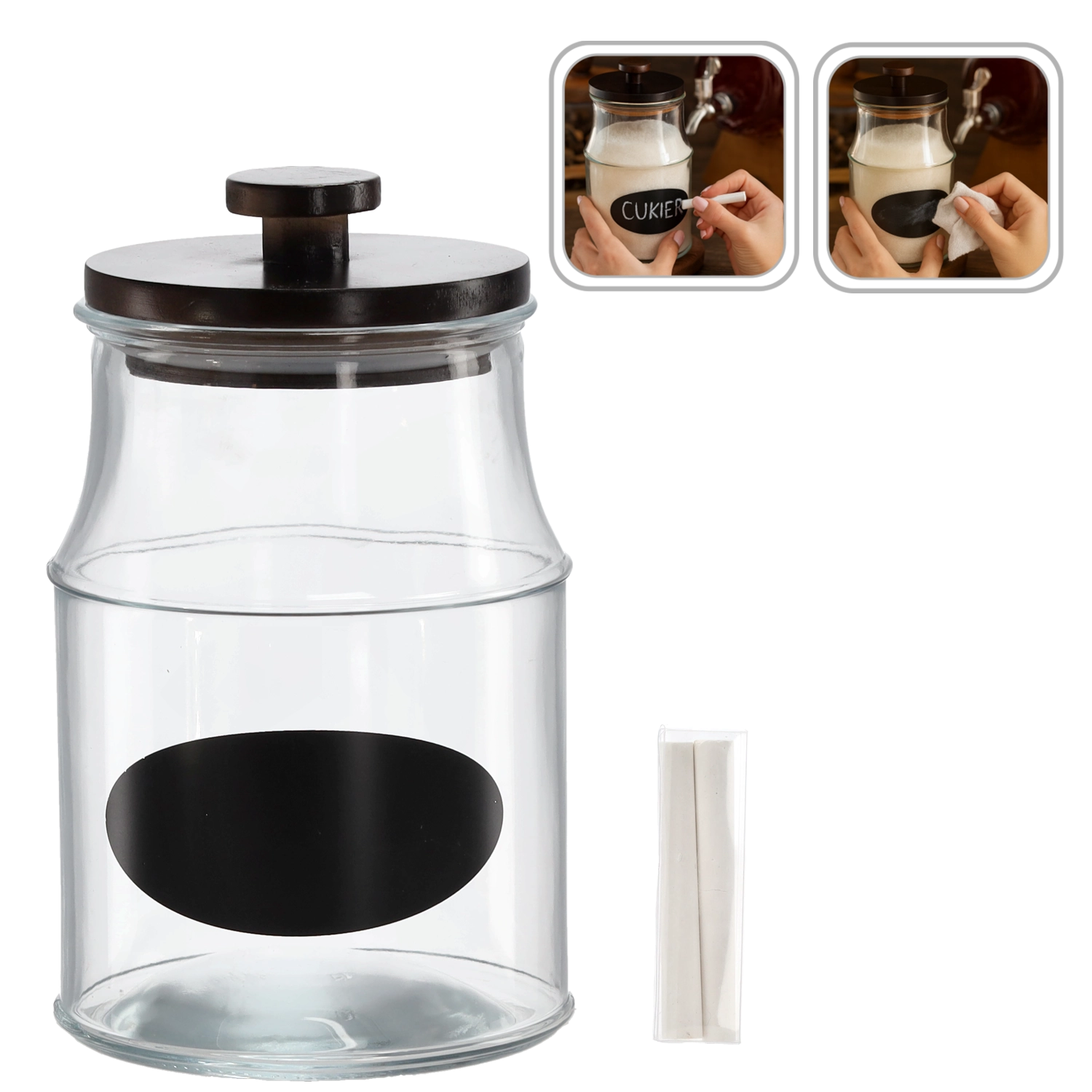 Ce bocal spacieux est parfait pour un rangement clair et hygiénique des aliments dans le garde-manger comme dans la cuisine. Le couvercle en bois assure une fermeture hermétique et aide à préserver la fraîcheur et les arômes des ingrédients stockés. Grâce à l’étiquette et à la craie fournies, vous saurez toujours ce que contient le bocal.