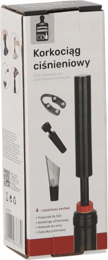 Élégant coffret cadeau pour les amateurs de vin, contenant tout le nécessaire pour une ouverture et un service confortables : tire-bouchon à pression, découpe-capsule, bouchon de bouteille et bec verseur avec aérateur. L’association de acier inoxydable et de plastique résistant en finition noire garantit une longue durée de vie et un look moderne.
