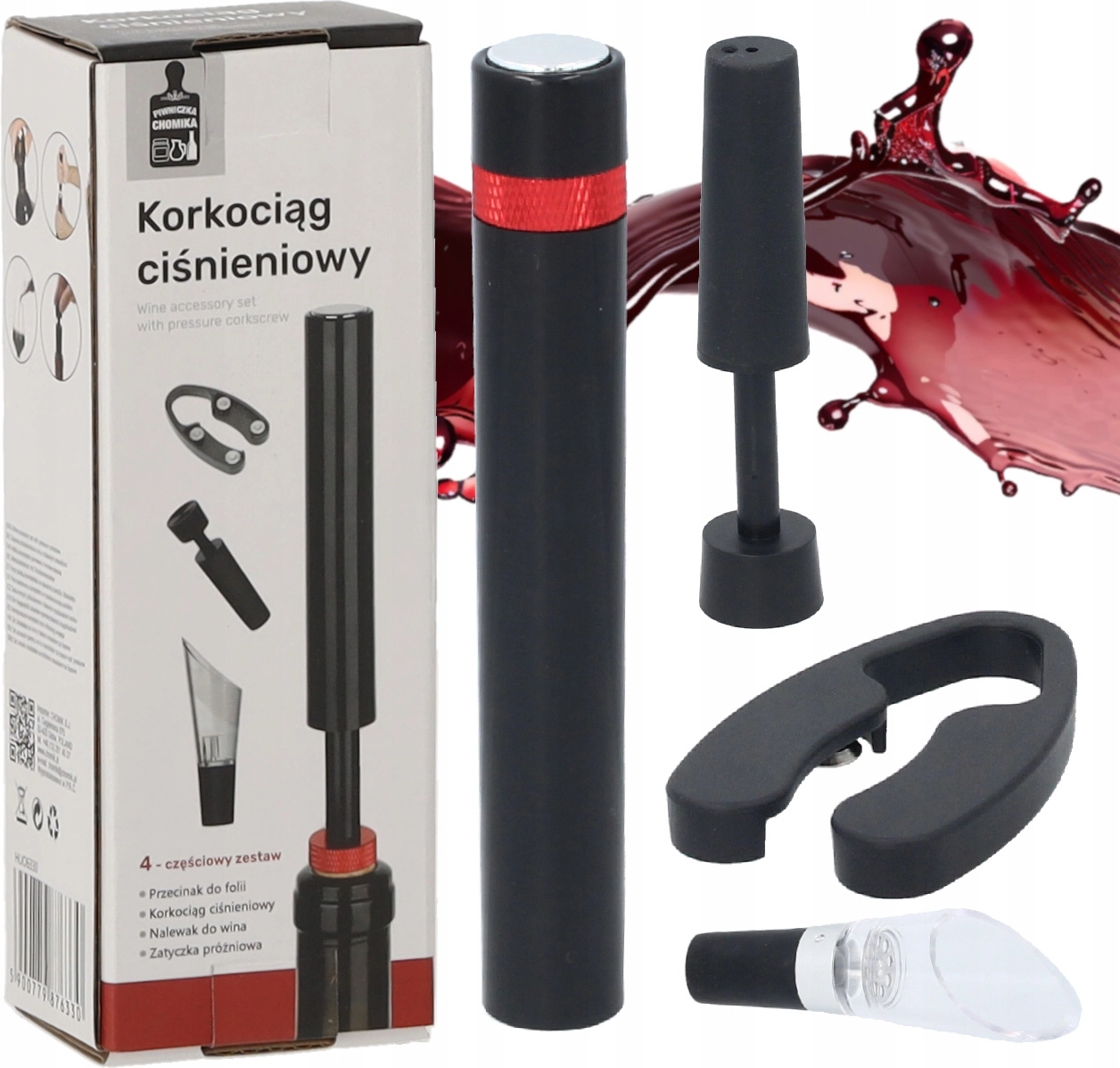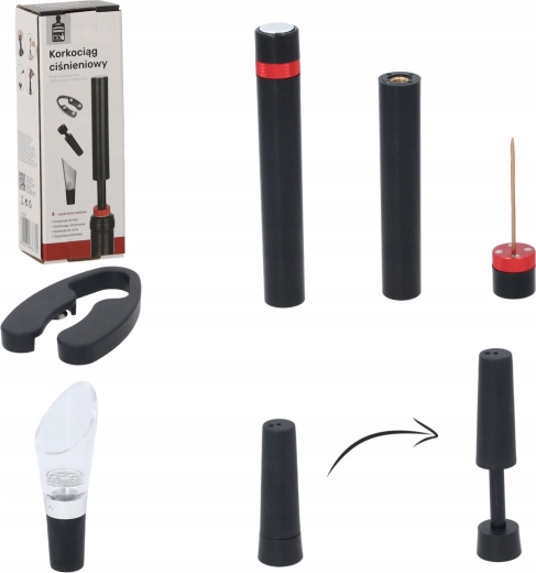 - Découpe-capsule, bouchon de bouteille, bec verseur (aérateur), tire-bouchon à pression