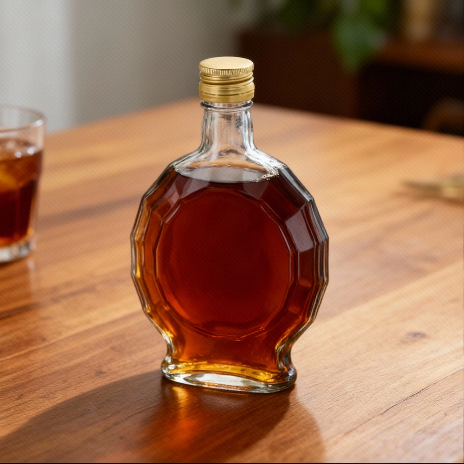 La bouteille en verre Medalion d’une capacité de 250 ml se distingue par sa forme octogonale, qui confère aux boissons une allure sophistiquée. Le verre transparent met superbement en valeur la couleur et la limpidité des liqueurs maison, vins ou sirops, tandis que le bouchon à vis assure une fermeture hermétique et préserve la fraîcheur ainsi que les arômes.