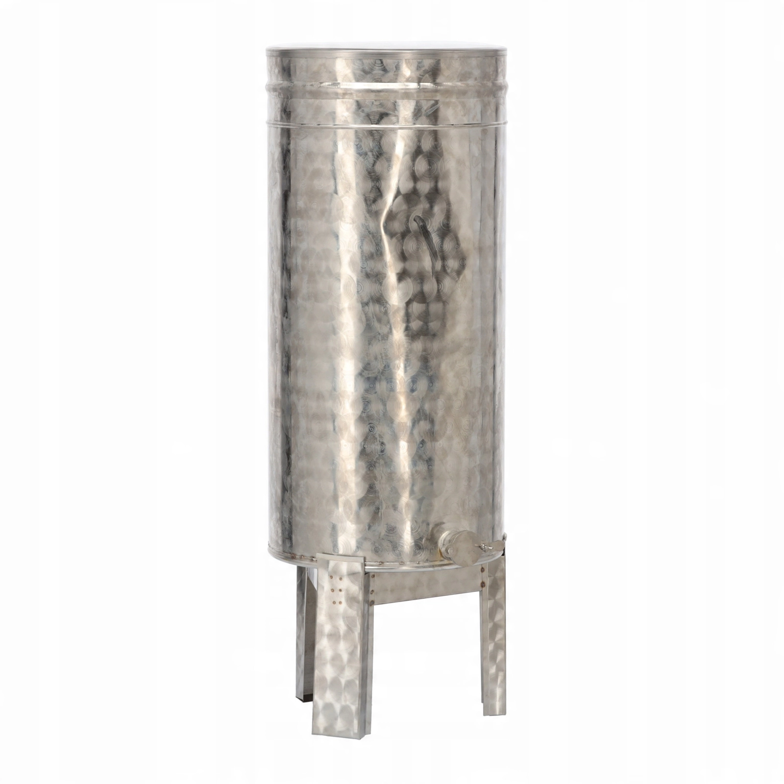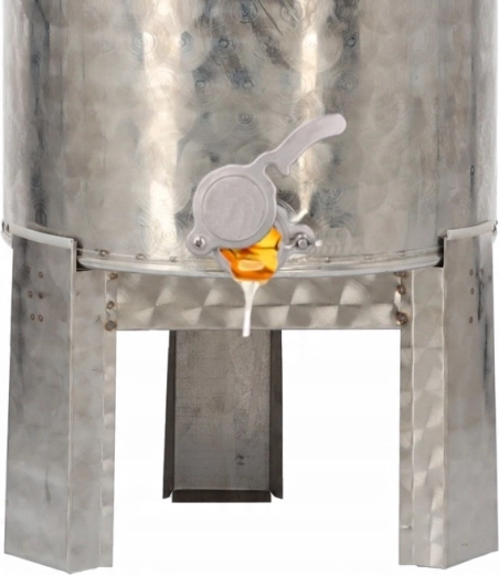 Récipient robuste en acier inoxydable avec finition martelée, résistant à la corrosion, facile à nettoyer et parfaitement adapté à tout atelier d’apiculture. Grâce au support surélevé, vous disposez d’une garde au sol suffisante sous l’orifice de vidange pour les récipients, garantissant un soutirage propre et sans déversement.