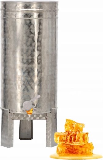 Le couvercle étanche protège le miel des impuretés et de l’humidité et aide à maintenir des conditions d’hygiène optimales. La vanne au fond du récipient permet un prélèvement fluide et précis du miel dans des bocaux ou des cruches.