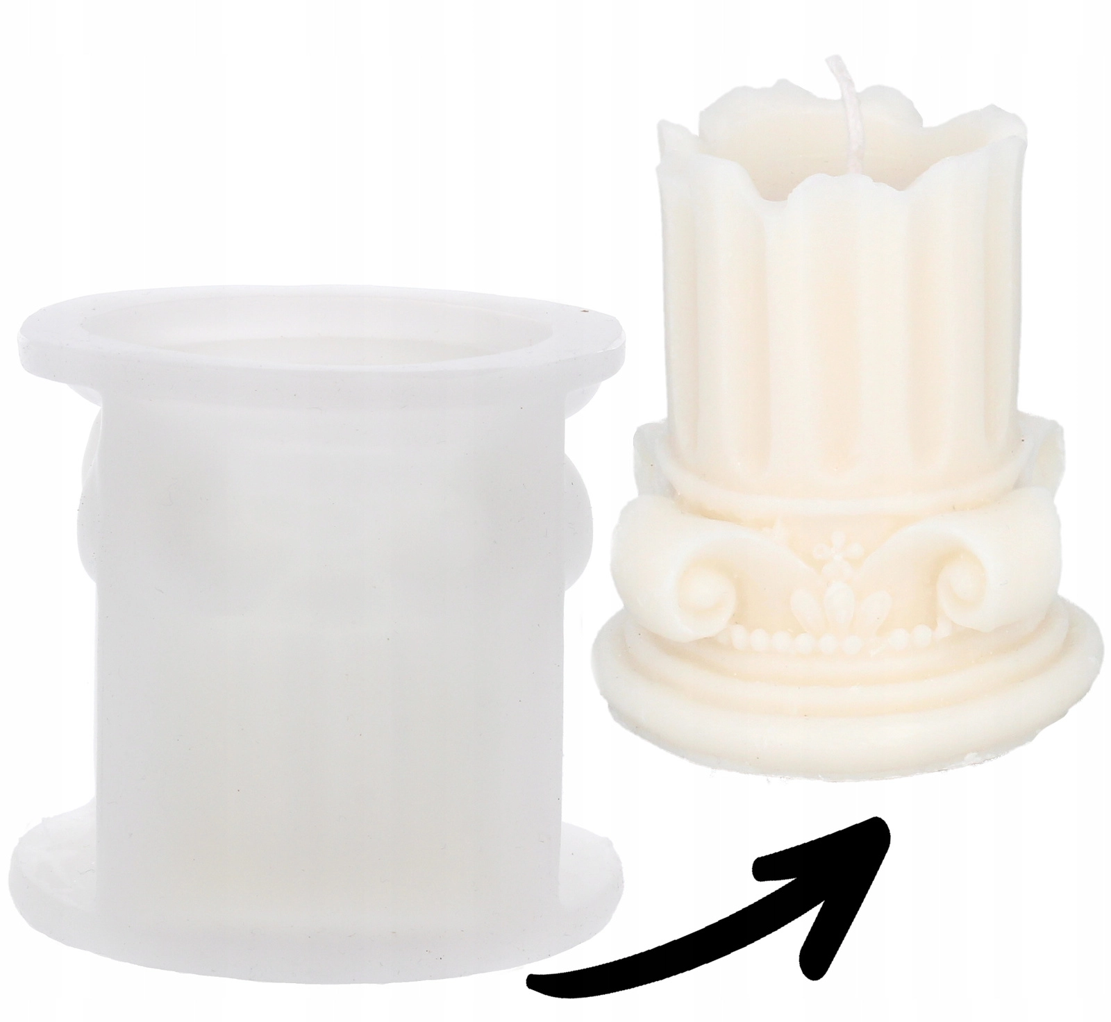 Le moule restitue avec précision les cannelures et les ornements, pour une bougie au rendu luxueux et représentatif dans tout intérieur.
