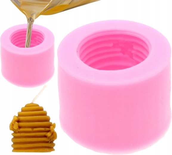 Le moule convient au coulage de cire ou de paraffine et crée une petite bougie en forme de ruche avec un relief marqué.