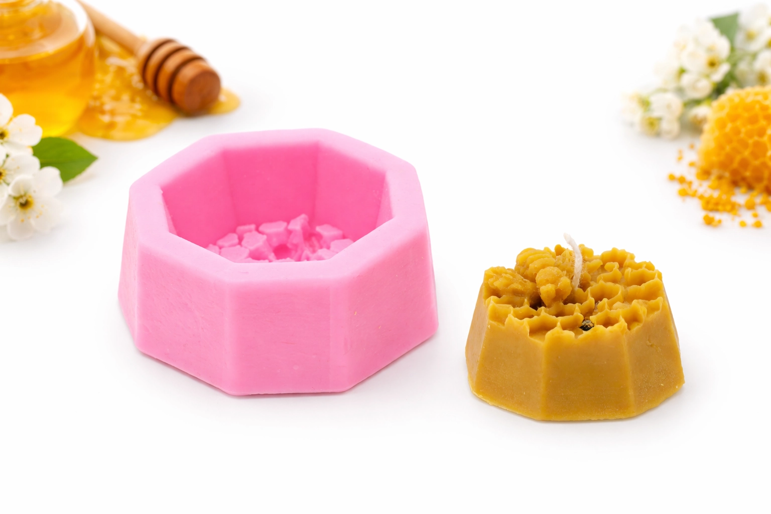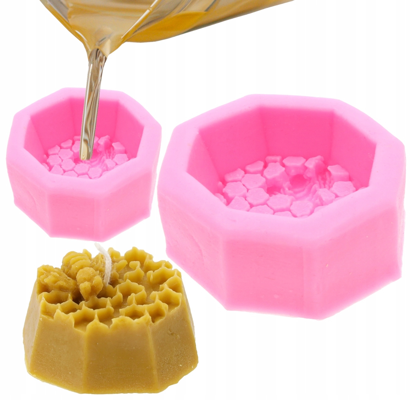 Découvrez le plaisir de fabriquer vos bougies à la maison avec ce moule en silicone résistant en forme d’octogone, orné d’une alvéole de miel et d’une abeille. Le matériau est souple, résistant à la chaleur et garantit un démoulage facile sans dommage, même pour les structures fines.