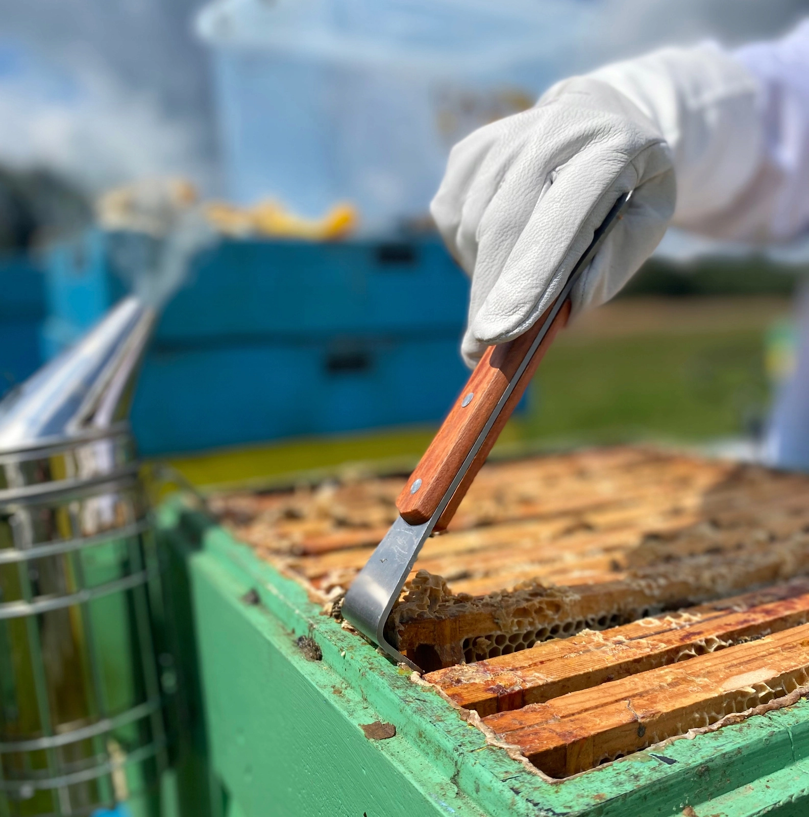 L’acier inoxydable résiste à la corrosion et se nettoie facilement, permettant à l’outil de supporter le travail quotidien au rucher.