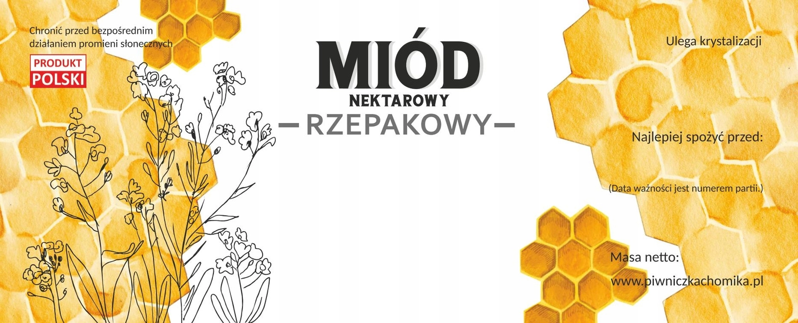 Ce jeu complet d’étiquettes est idéal pour les apiculteurs et producteurs de miel souhaitant étiqueter leurs bocaux de façon claire et esthétique. Les étiquettes pour miel de colza ont un format universel de 154 × 60 mm, ce qui leur permet de s’adapter aux bocaux standard de miel et d’assurer une présentation professionnelle du produit.