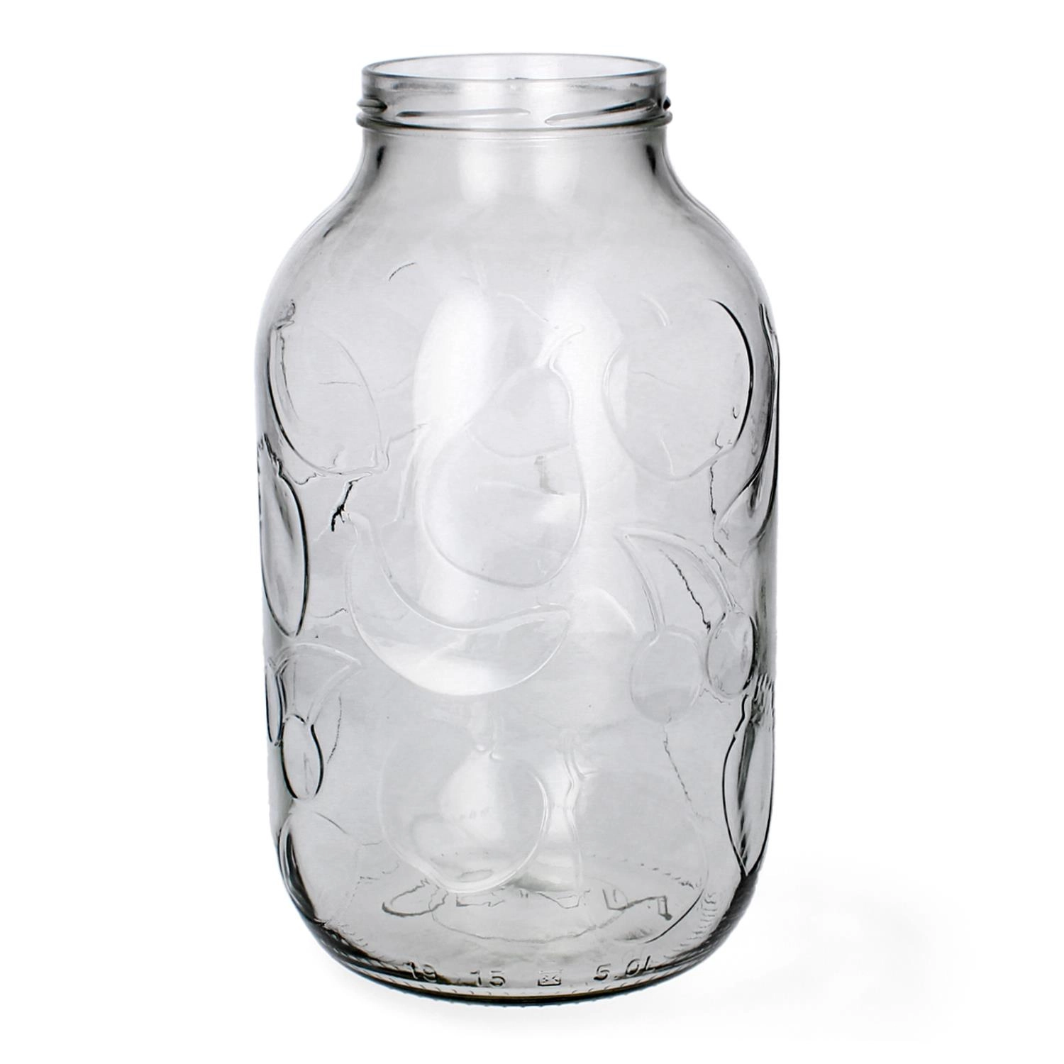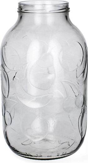 Grand bocal en verre de 5 l, idéal pour confitures, compotes, légumes marinés et liqueurs maison. Le large goulot de 100 mm facilite le remplissage et le nettoyage, le verre épais et transparent permet de contrôler le contenu et le motif fruité décoratif apporte du style à votre garde-manger. Compatible avec des couvercles métalliques de 100 mm, adapté à la pasteurisation et au lave-vaisselle.