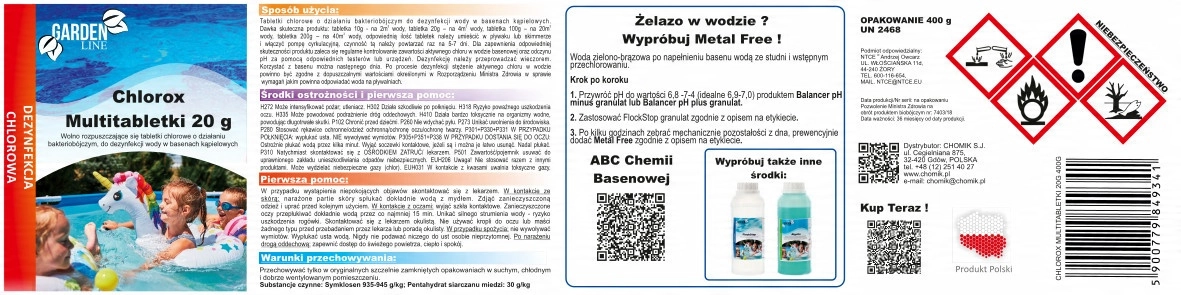 Maintenez l’eau de votre piscine parfaitement propre et hygiénique avec les tablettes CHLOROX 20 g en emballage de 400 g. Ces multitablettes assurent une désinfection efficace, freinent la croissance des algues et aident à garder une eau cristalline. Grâce au format pratique de 20 g, le dosage est simple et précis. L’application se fait via un doseur flottant ou le skimmer et l’effet dure 5 à 7 jours.