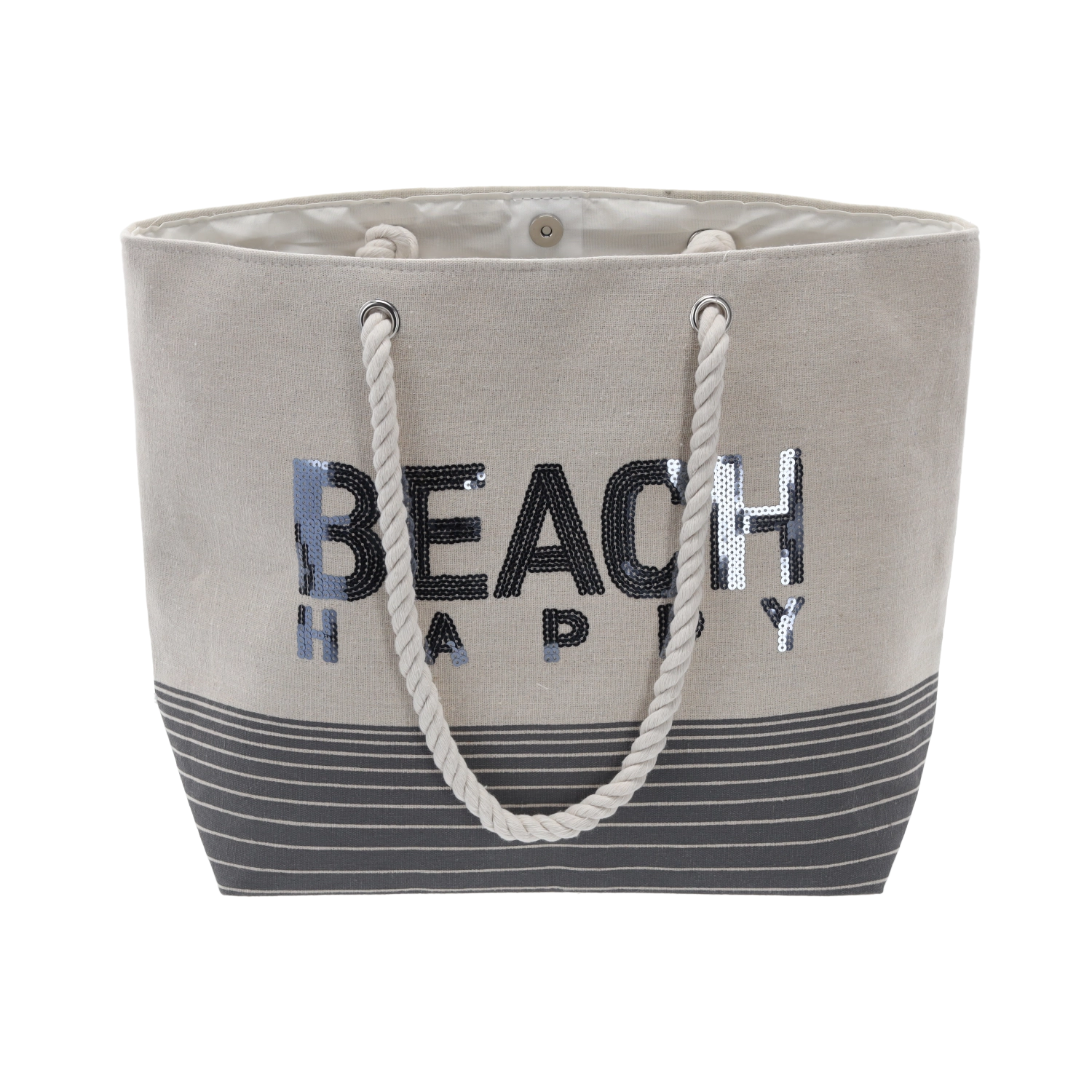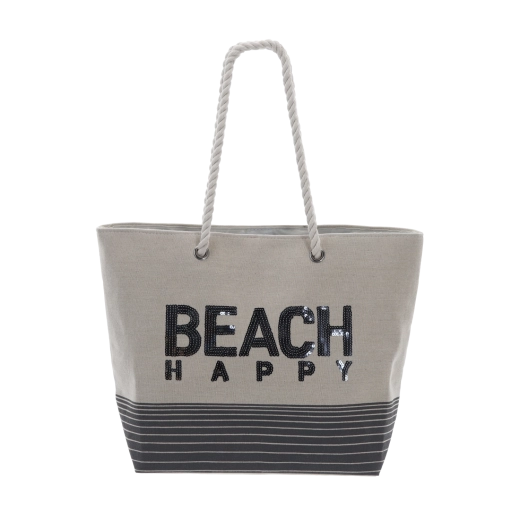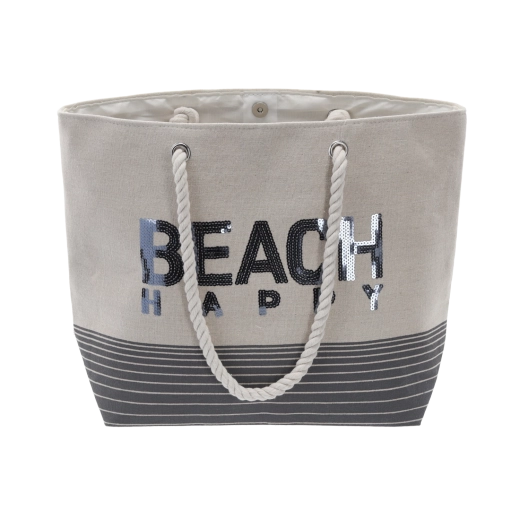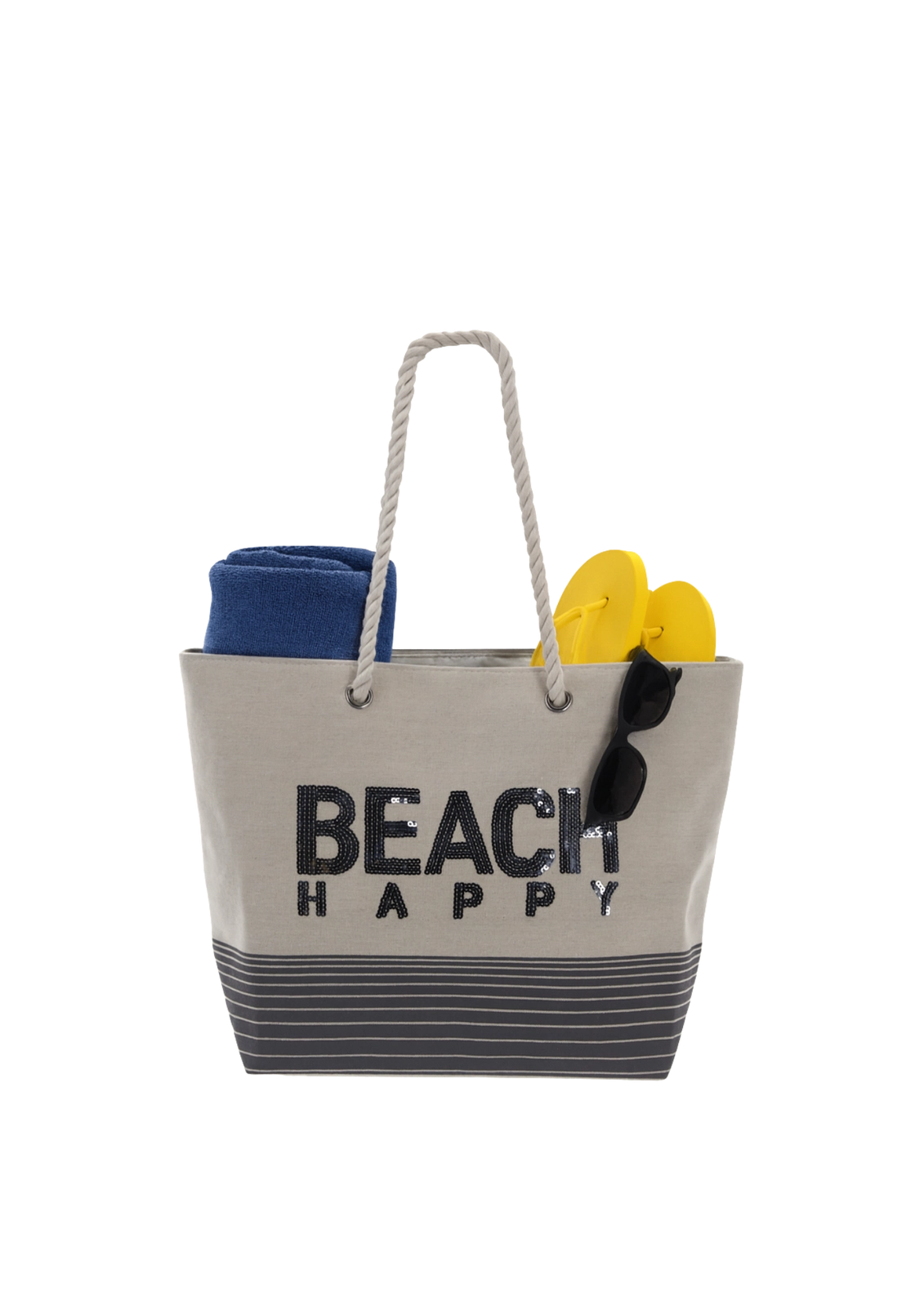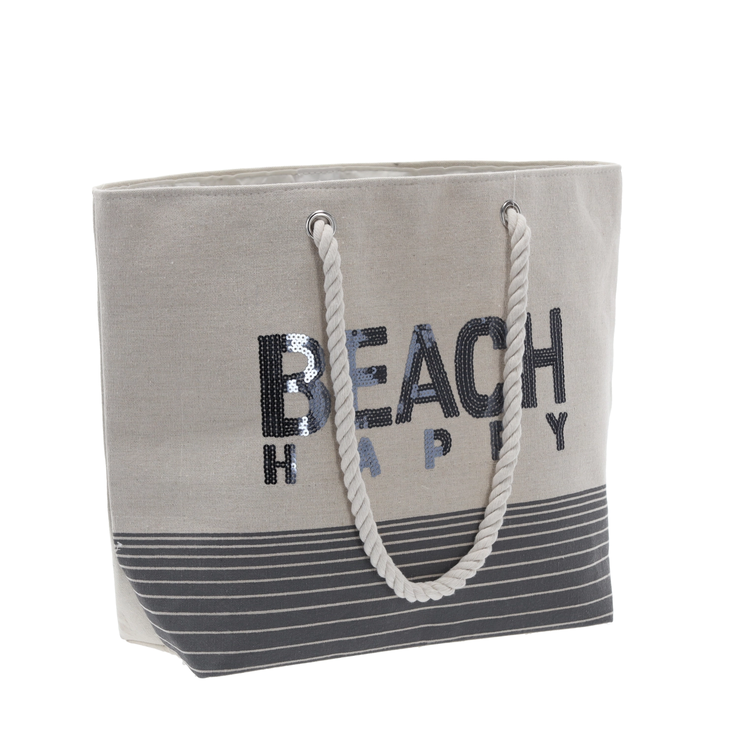 Sac de plage Beach Happy stylé et pratique aux dimensions 50 × 35 cm, offrant suffisamment d’espace pour une serviette, une crème solaire et d’autres indispensables. Grâce à sa construction légère, ses poignées souples et sa poche intérieure zippée, il est idéal pour les escapades estivales à la mer, au lac ou en ville.