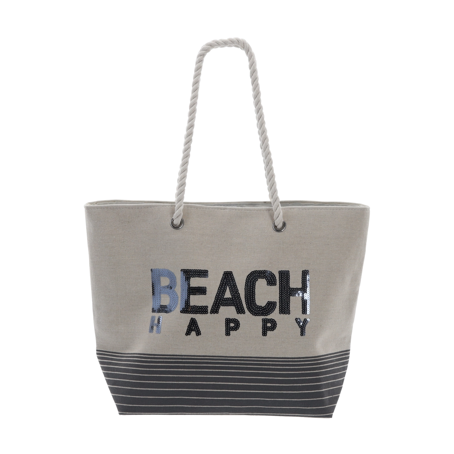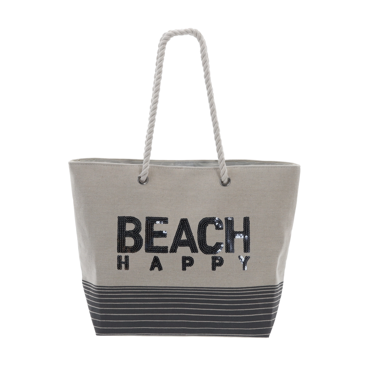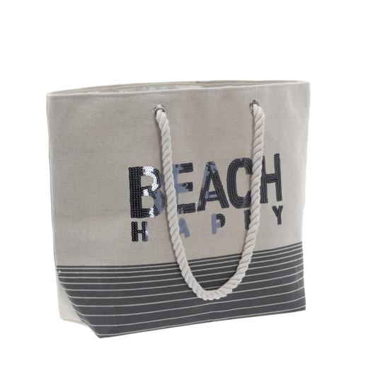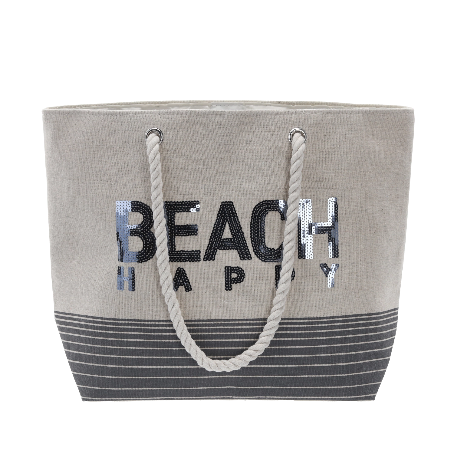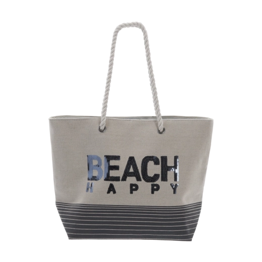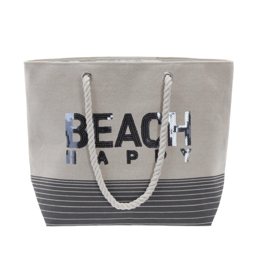 Sac de plage Beach Happy stylé et pratique aux dimensions 50 × 35 cm, offrant suffisamment d’espace pour une serviette, une crème solaire et d’autres indispensables. Grâce à sa construction légère, ses poignées souples et sa poche intérieure zippée, il est idéal pour les escapades estivales à la mer, au lac ou en ville.
