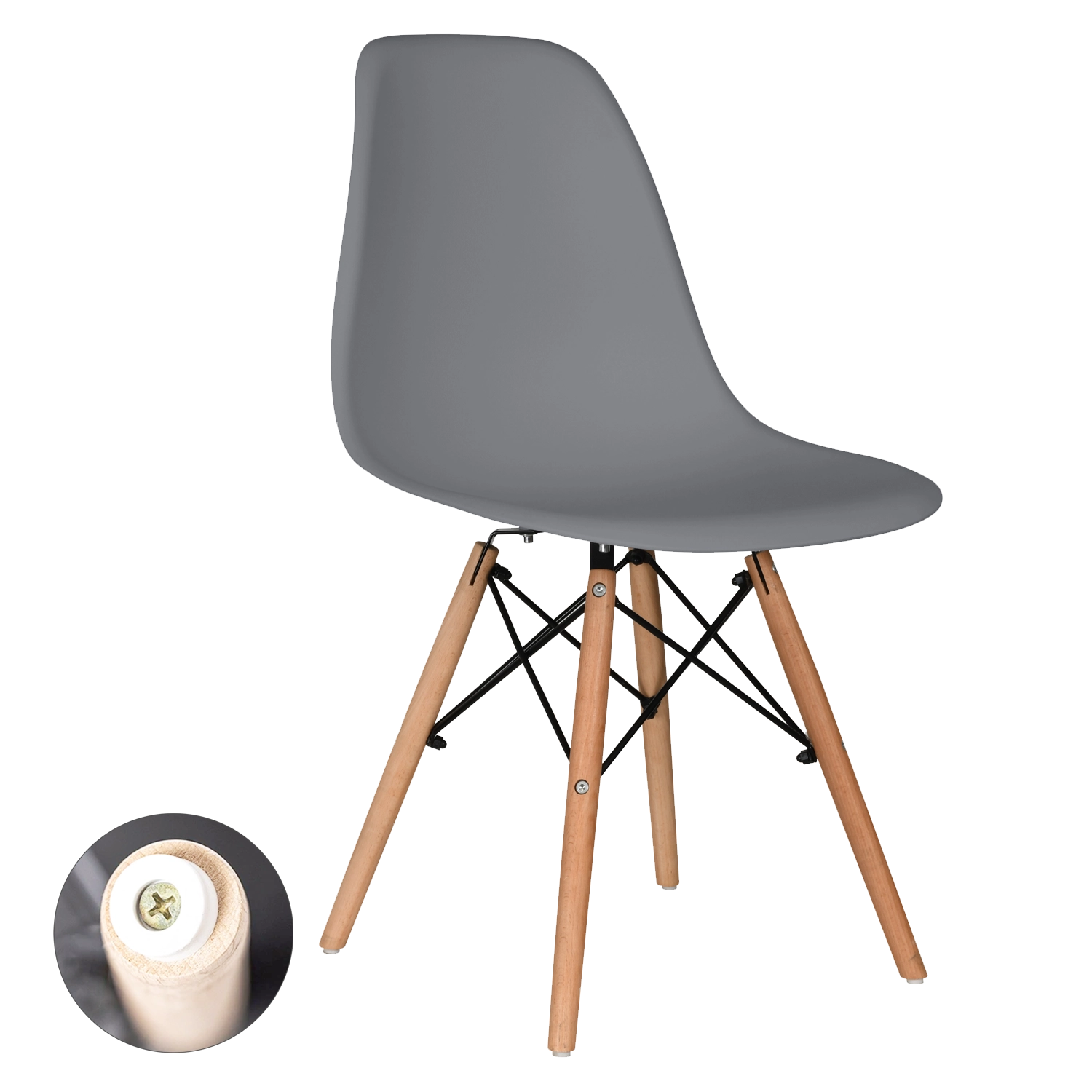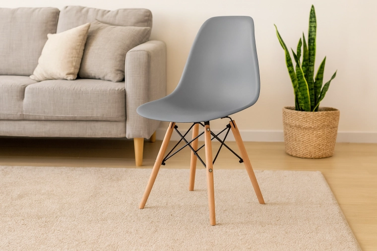 Chaise de salle à manger élégante en gris alliant design minimaliste, confort ergonomique et structure robuste. L’assise moulée en PP se nettoie facilement, les pieds en hêtre naturel avec renfort croisé en métal assurent stabilité et longévité. Idéale pour la salle à manger, le salon, la cuisine et les cafés.