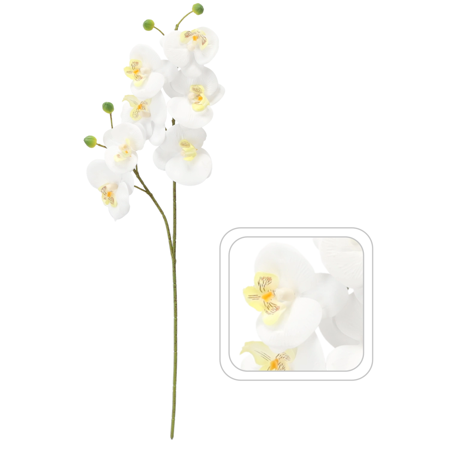 Apportez une beauté intemporelle avec cette branche d’orchidée artificielle blanche. Ses fleurs réalistes et ses finitions détaillées évoquent une plante fraîchement épanouie qui ne nécessite pourtant aucun entretien. Un choix parfait pour les intérieurs modernes ou classiques, les mariages, les réceptions et les décorations saisonnières.
