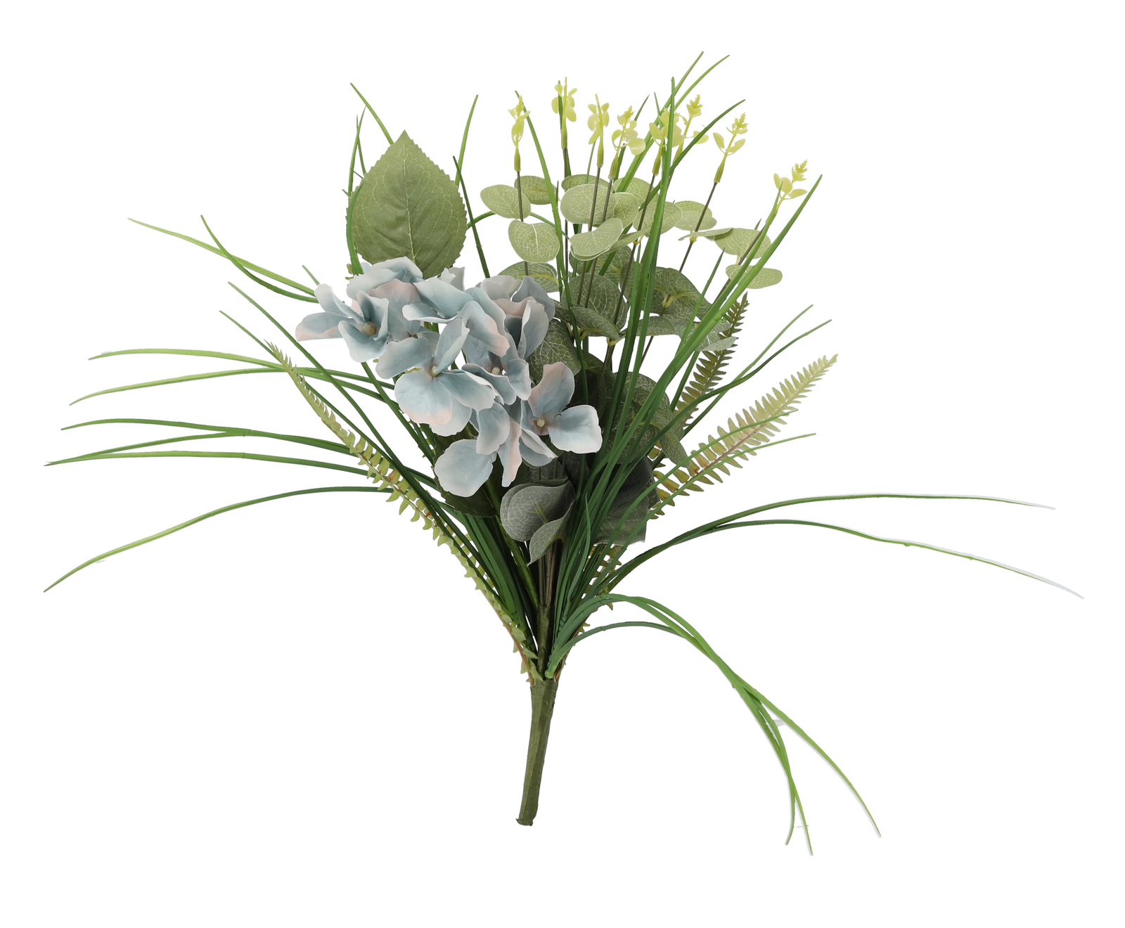 Les nuances bleues subtiles des fleurs et le vert frais s’intègrent parfaitement aux intérieurs modernes comme classiques. Le bouquet est résistant et durable, il gardera longtemps un aspect frais – sans arrosage et sans chute de pétales.