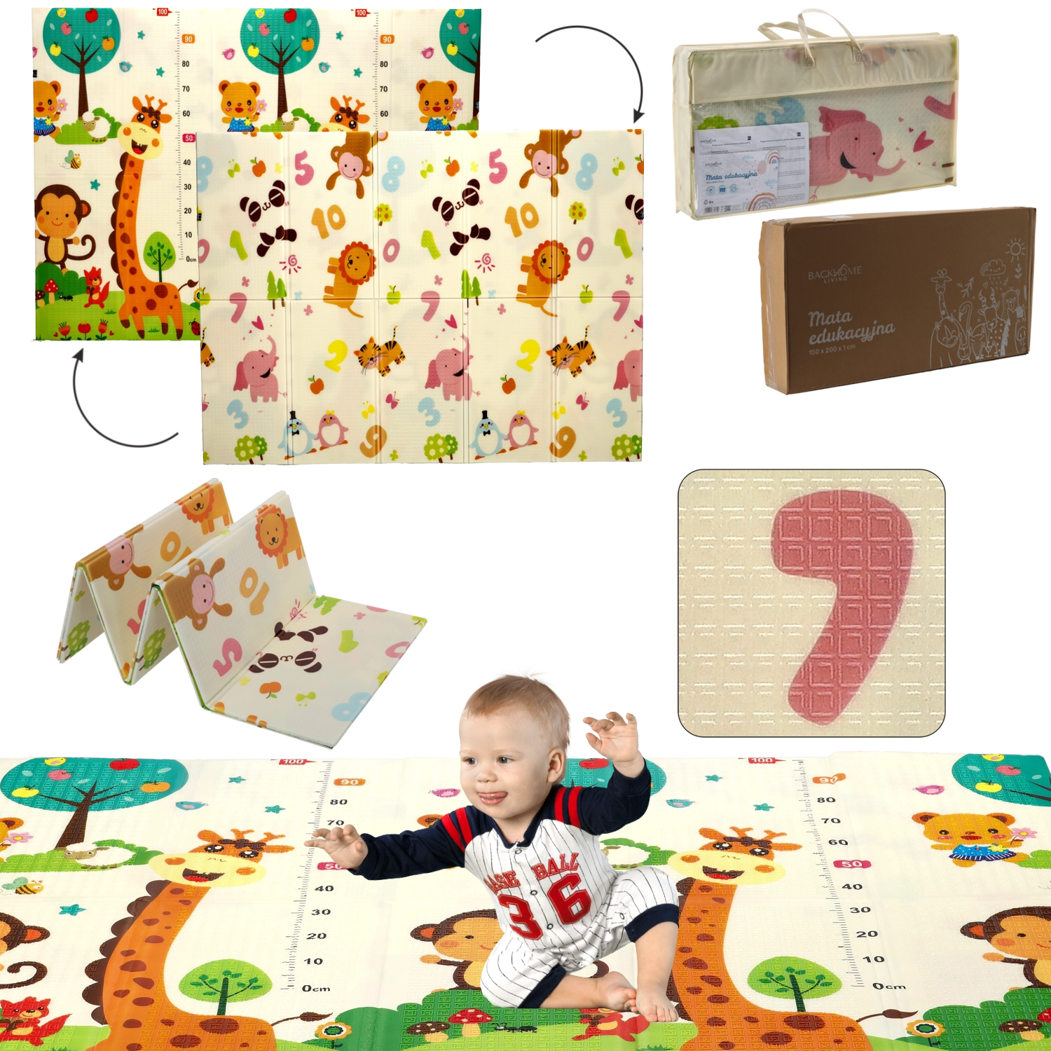 • Design double face – motifs éducatifs d’animaux et de chiffres favorisant l’apprentissage.