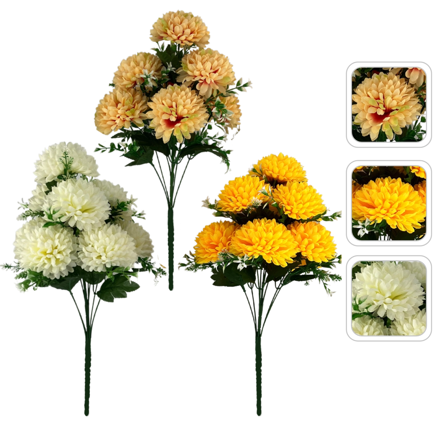 Ce bouquet artificiel de chrysanthèmes est un choix idéal pour une décoration durable de la maison, du bureau ou des espaces commerciaux. Grâce au réalisme des fleurs, des feuilles et des graminées, il paraît authentique et conserve son aspect frais toute l’année, sans arrosage ni entretien particulier.