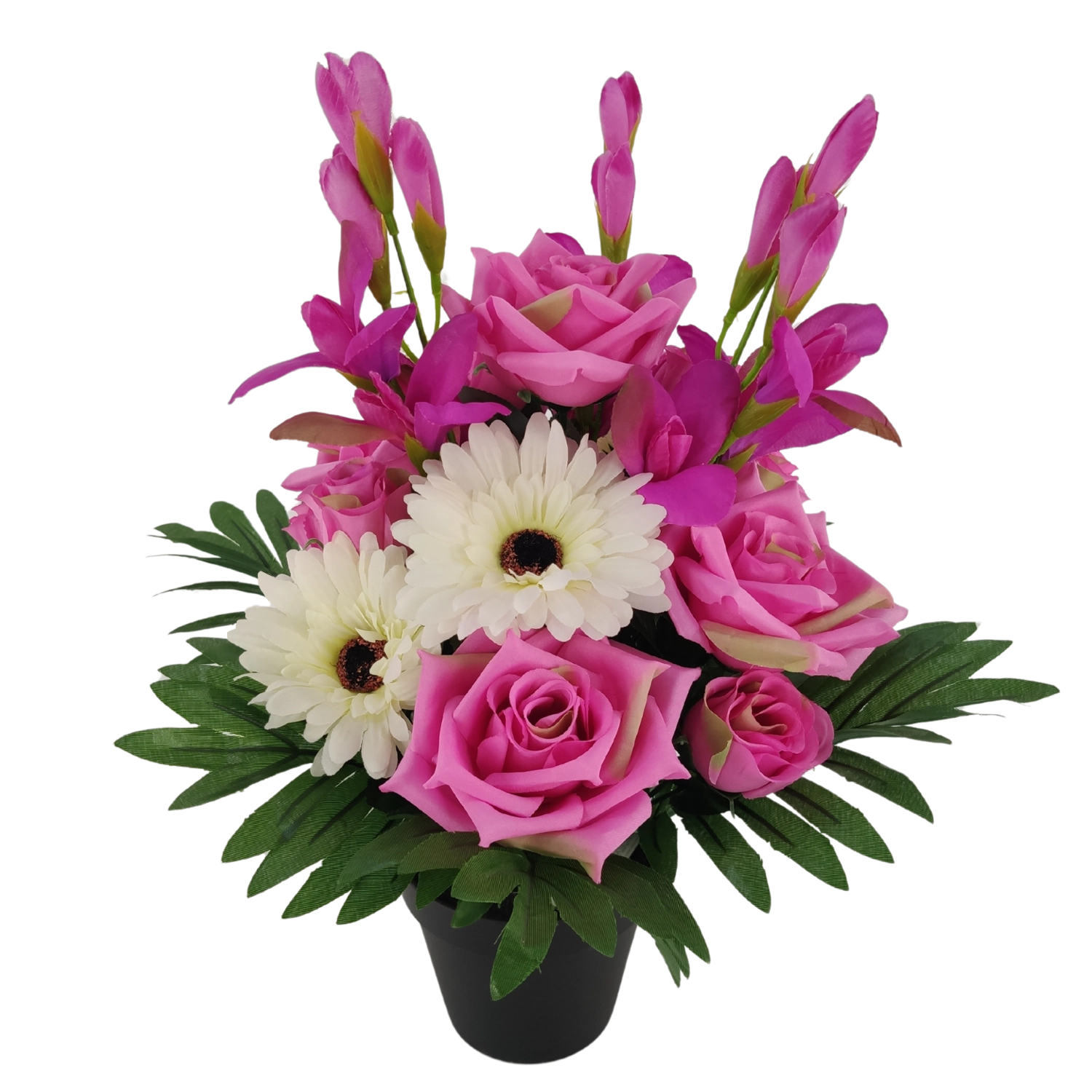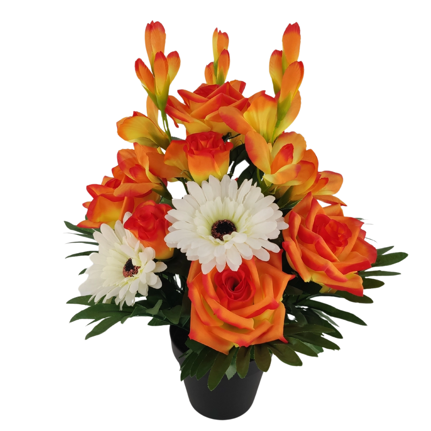 Composition florale artificielle en pot 43 cm, mélange de couleurs