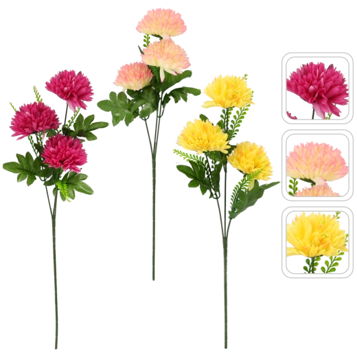 Ce chrysanthème artificiel reproduit fidèlement la fleur naturelle – des pétales soigneusement façonnés jusqu’aux feuilles réalistes. Grâce à un matériau résistant, il conserve ses couleurs et sa forme durablement, sans arrosage ni soins particuliers.