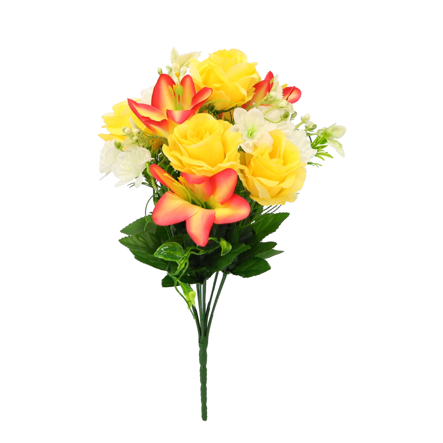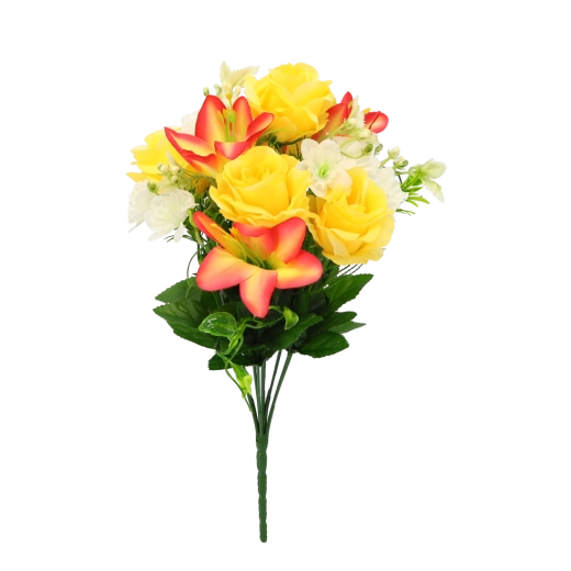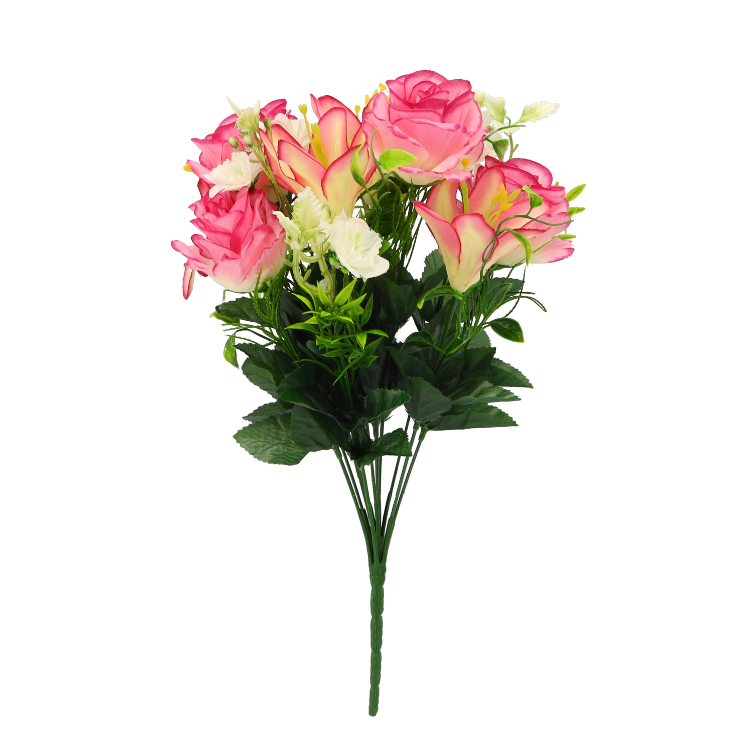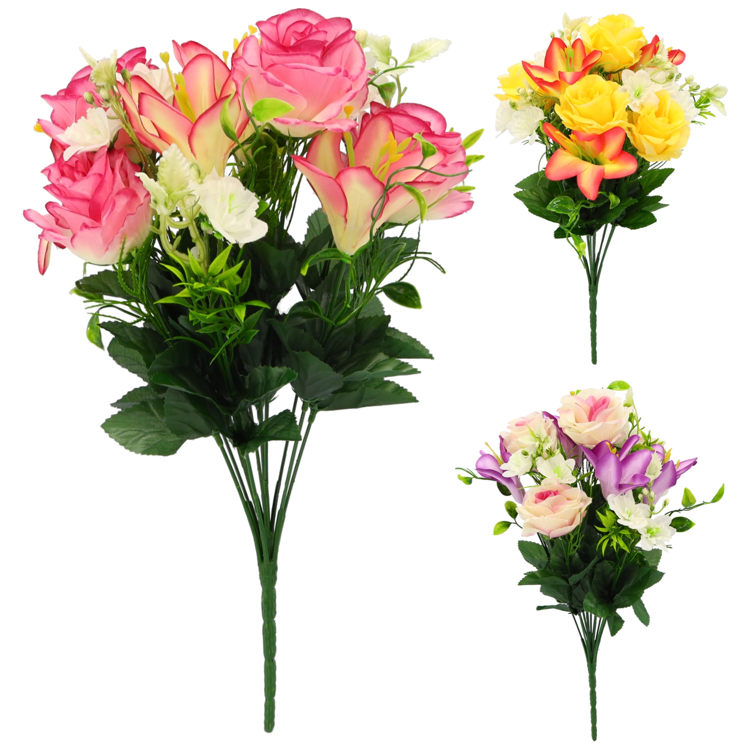 Apportez la beauté intemporelle des fleurs à votre intérieur sans contrainte. Ce bouquet artificiel de roses et de lys offre une reproduction fidèle des pétales et des feuilles, une forme stable et une longue durée de vie. Grâce au mélange de couleurs, vous l’accordez aisément avec des compositions modernes ou classiques.