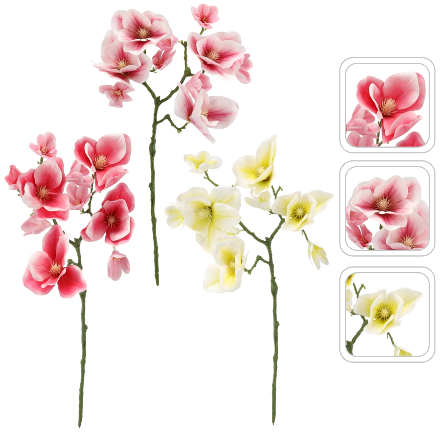 Branche décorative de magnolia artificielle de 56 cm de hauteur, apportant une touche d’élégance à votre intérieur toute l’année. Le rendu fidèle des fleurs et des feuilles paraît réaliste, ne nécessite aucun entretien et convient parfaitement aux vases, aux compositions ou comme accessoire de décoration de mariage et saisonnière. Disponible en assortiment de couleurs pour s’harmoniser facilement avec votre style.