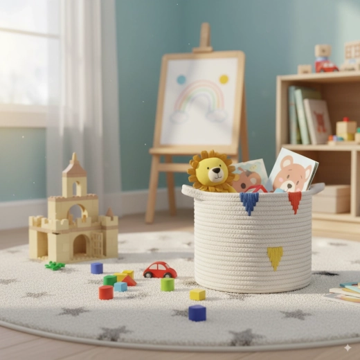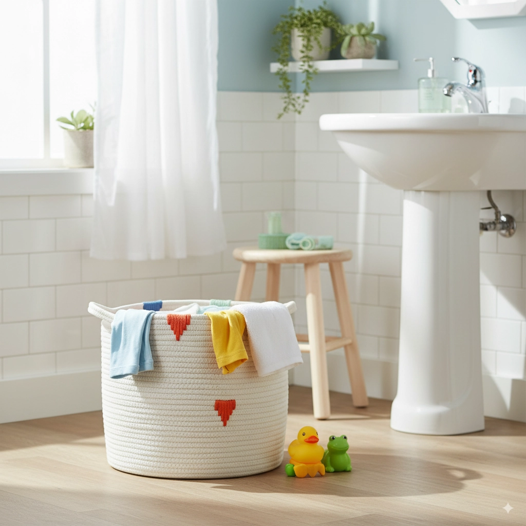 La taille 27 × 24 cm convient parfaitement à la salle de bain, à la chambre d’enfant et à l’entrée. Grande praticité sans encombrer inutilement l’espace.