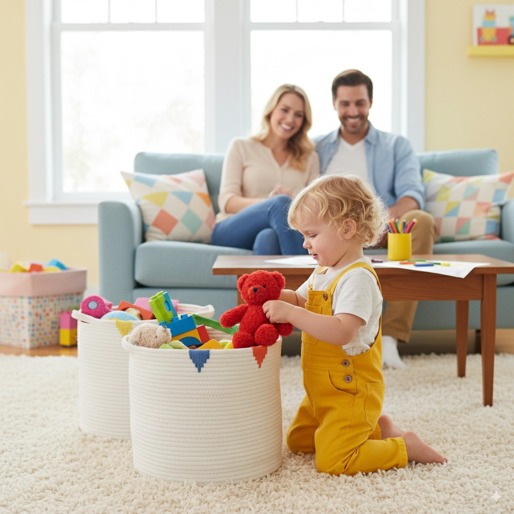 Le panier est fabriqué à partir de matériaux de qualité, résistants et faciles à entretenir. Léger, il se transporte aisément d’une pièce à l’autre — de la salle de bain à la chambre ou du salon à la chambre d’enfant. Sa structure souple mais stable est sûre même pour les espaces dédiés aux enfants.