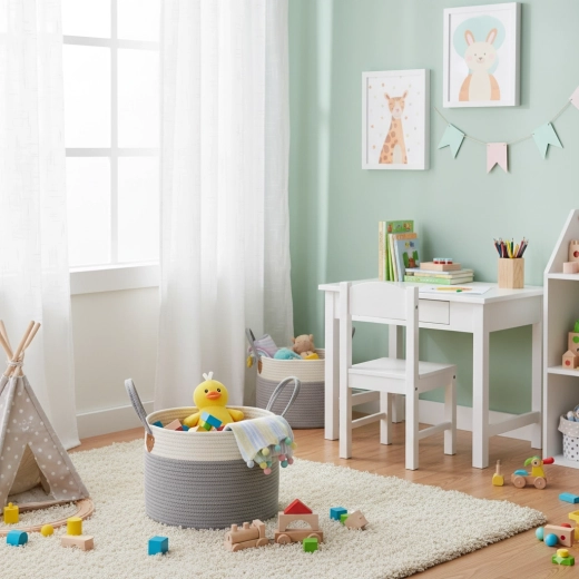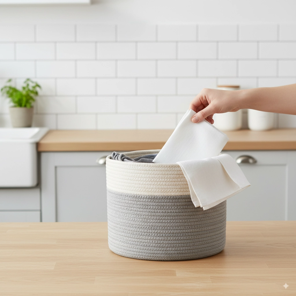 Le panier est fabriqué en tissu de qualité, agréable au toucher, qui garde sa forme et se nettoie facilement. Idéal pour un usage quotidien à la maison.