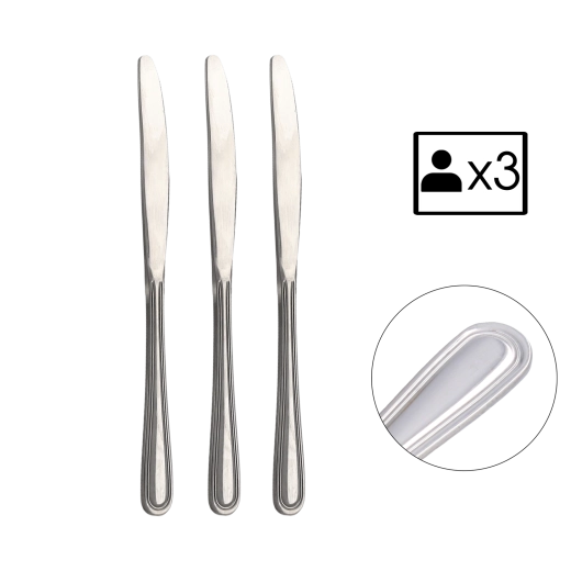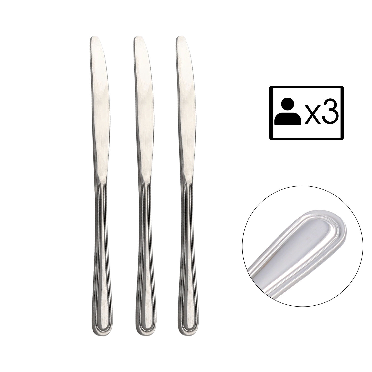 • 3 couteaux pratiques au style uniforme pour un usage polyvalent à table.