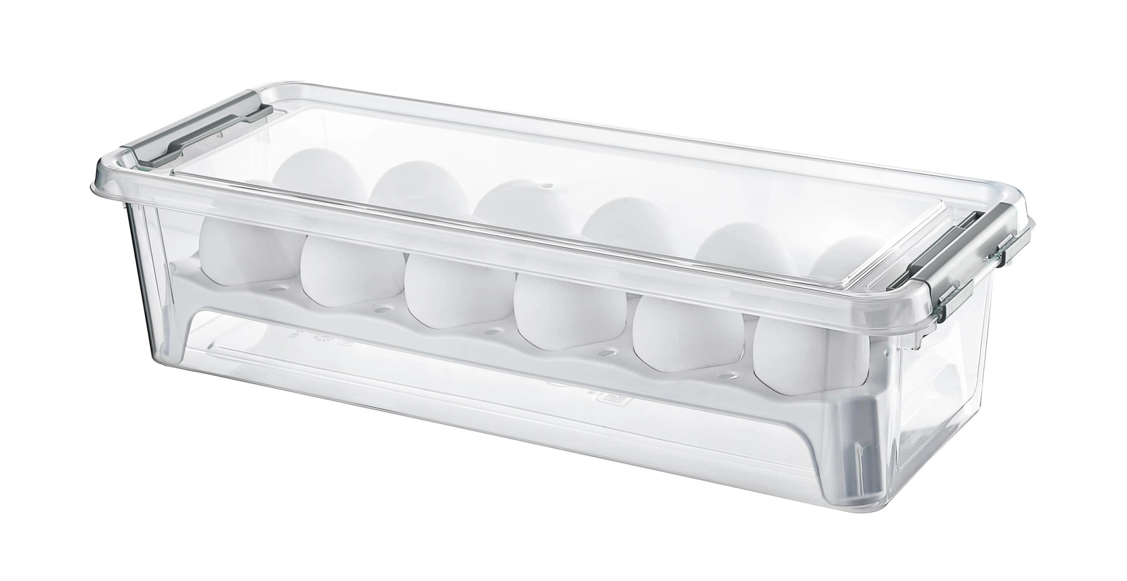 Pratique, la boîte rectangulaire pour œufs pouvant contenir jusqu’à 12 pièces est fabriquée en plastique de haute qualité sans BPA nocif. Grâce à son ouverture facile, sa construction résistante et la possibilité de ranger au réfrigérateur comme au congélateur, elle est idéale pour une utilisation quotidienne et le transport sécurisé des œufs. Compatible lave-vaisselle.